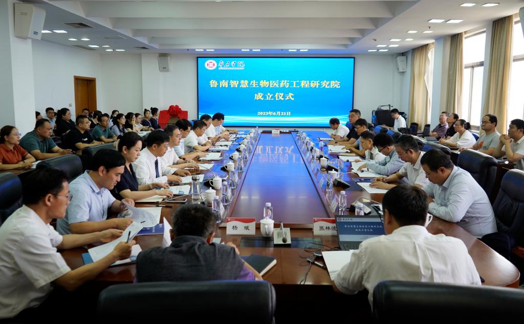 张庆伟、高峰共同为鲁南智慧生物医药工程研究院揭牌。