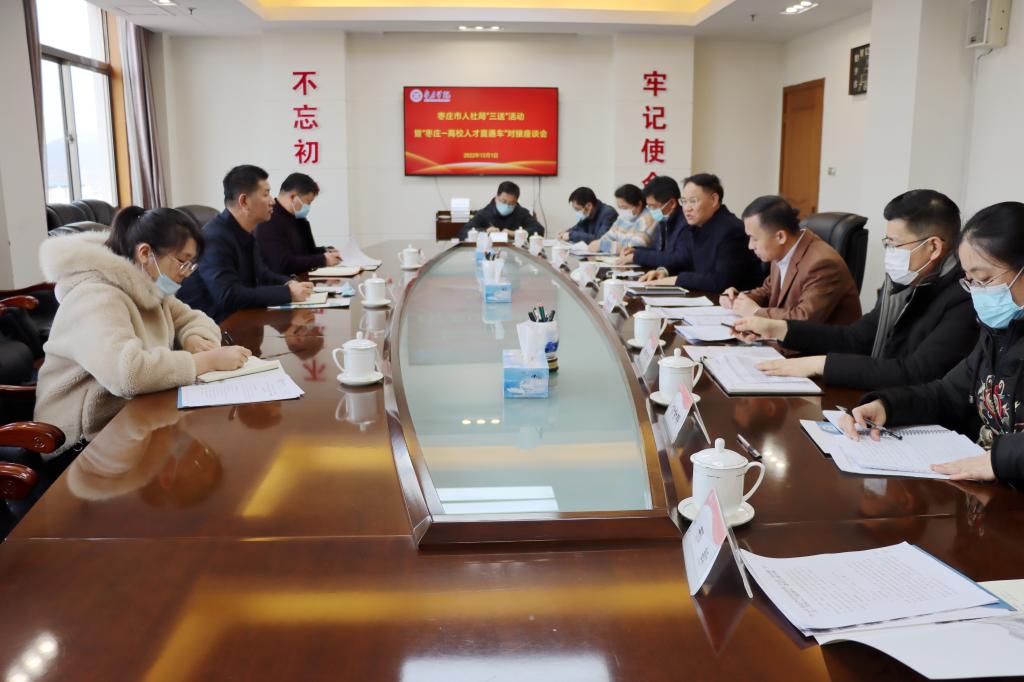 为进一步促进应届毕业就业创业工作,根据全国和山东省2023年普通高校毕业生就业创业工作视频会议精神,学校全力搭建就业平台建设,多措并举统筹就业资源。12月1日下午,学校邀请枣庄市人社局公共就业和人才服务中心副主任尚文宇一行来校就搭建校地就业创业平台、挖掘岗位资源进行调研和座谈。校党委副书记、校长李文喜出席座谈会并讲话。