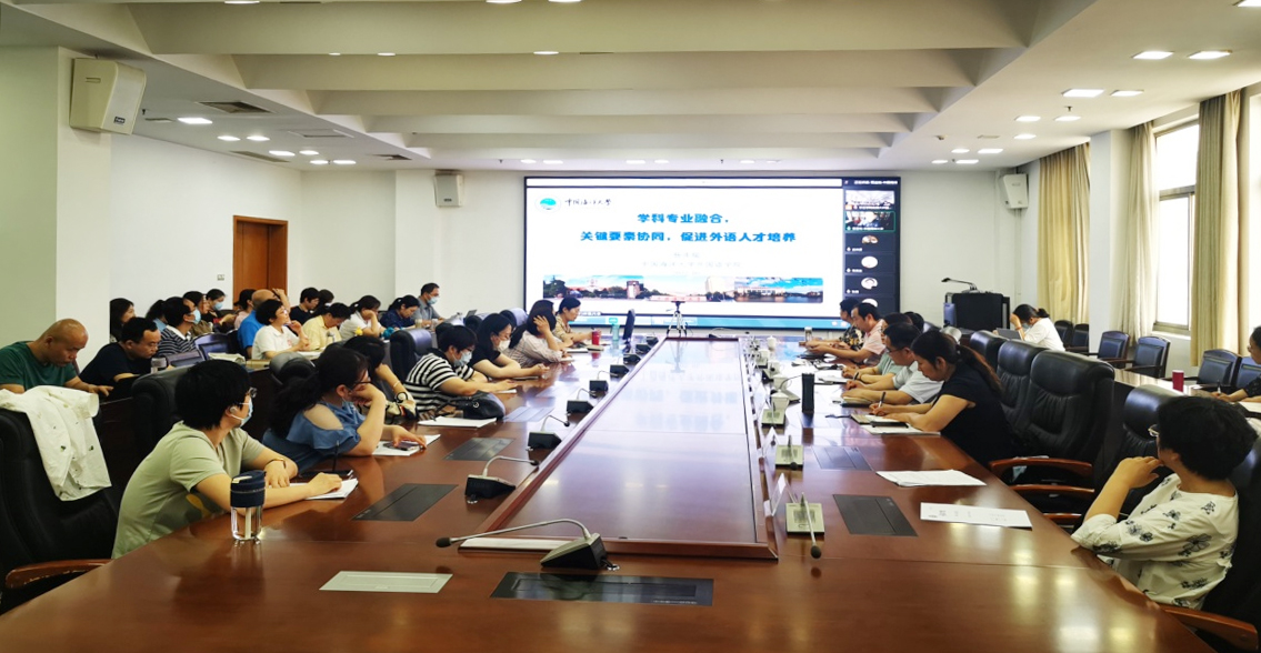 5月25日下午,我校“名师大讲堂”系列学术报告第八讲在综合楼三楼会议室通过腾讯会议方式成功举办。中国海洋大学外国语学院博士生导师、外国语学院院长杨连瑞教授应邀作了题为“外语人才培养中的关键要素协同——兼谈外语教师的专业发展”的学术报告。外国语学院以及大学英语教学部全体专业教师、外国语学院师范类专业学生以线上方式参加会议,会议由社会科学处处长何芳主持。