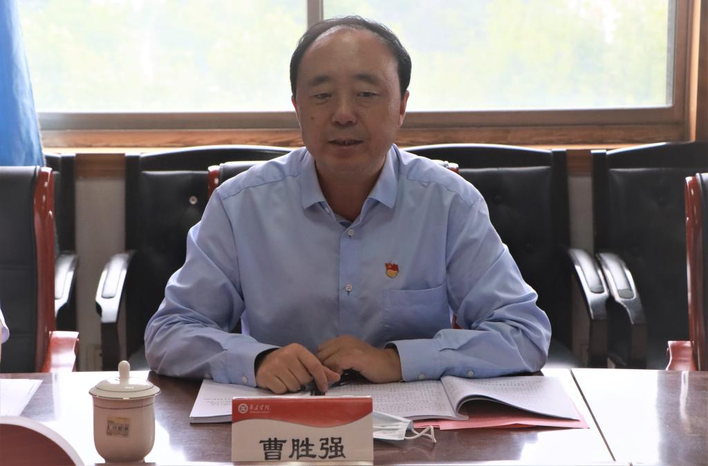 9月1日下午,校党委书记曹胜强以普通党员身份参加所在的马克思主义学院第二党支部专题组织生活会,深入学习贯彻习近平总书记在庆祝中国共产党成立100周年大会上的重要讲话精神,围绕“学党史、悟思想、办实事、开新局”主题,交流心得,剖析问题,明确方向,推动党史学习教育走深走实。省委党史学习教育第四巡回指导组组长、省人大常委、教育科学文化卫生委员会主任委员王红勇,指导组成员武伟福到会指导,王红勇作点评。校党史学习教育领导小组成员、校党委委员孙正和张昌林列席会议。