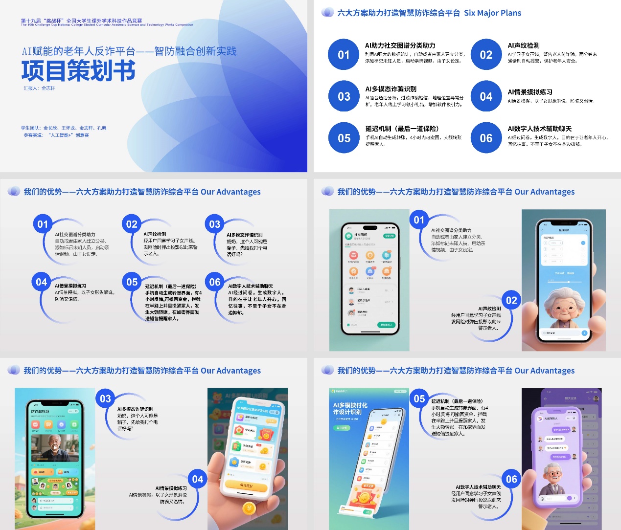 近日,在共青团中央、中国科协、教育部、中国社会科学院、中国工程院、全国学联和江苏省人民政府共同主办的第十九届“挑战杯”全国大学生课外学术科技作品竞赛“人工智能+”专项赛中,由我校美术与艺术设计学院教师吴中昊、王笑然、汤文广指导,金长欣、王怀龙、金志轩、孔萌同学完成的作品《AI赋能的老年人反诈平台——智防融合创新实践》荣获全国二等奖,实现了我校在“人工智能+”赛道国家级奖项零的突破。