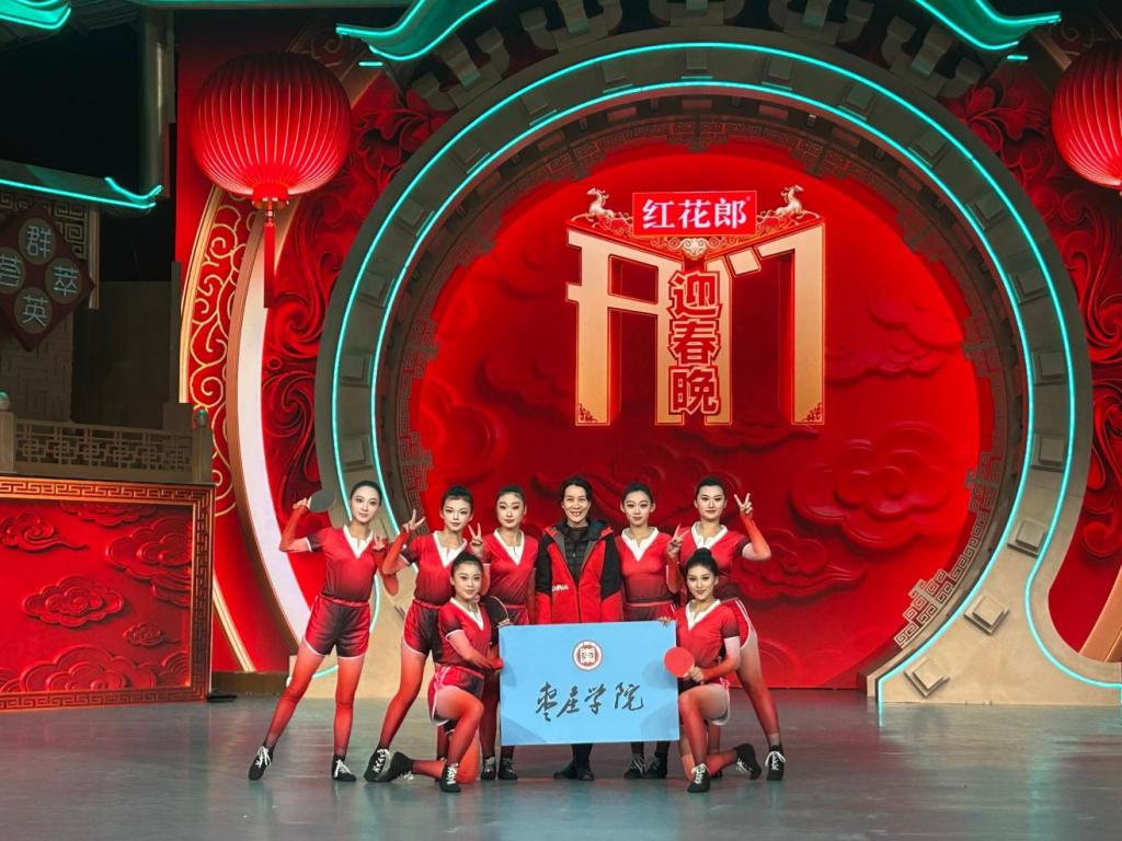近日,我校美育工作再传喜讯。在2月6日晚中央广播电视总台综艺频道(CCTV-3)播出的《2026年开门迎春晚》全民共创节目中,我校体育学院王茗钰等八名学生受邀参加节目录制,并以精湛的技艺、默契的配合和极具感染力的舞台表现,荣获“优秀节目推荐卡”。