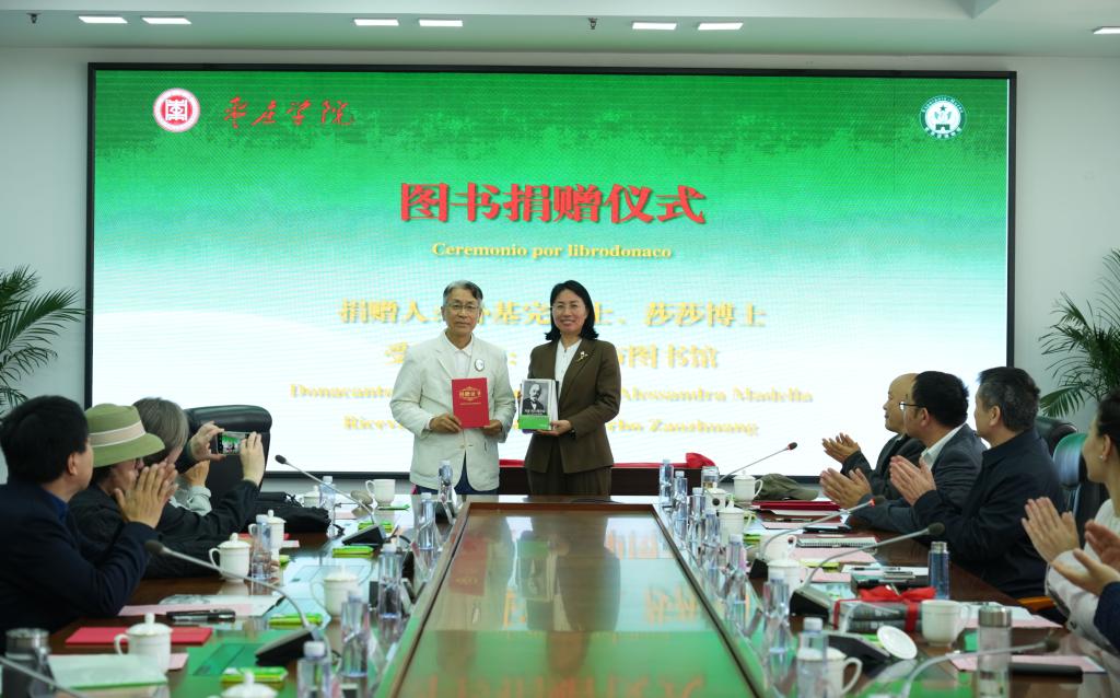 发布会期间,我校向中华全协、韩国世协、韩国柴门霍夫学堂、枣庄市档案馆、枣庄市图书馆、枣庄市荀子研究会赠送中世双语《荀子》新书,并分别向枣庄市档案馆、枣庄市图书馆赠送世界语档案史料及图书。韩国世协、韩国柴门霍夫学堂向我校赠送世界语图书。