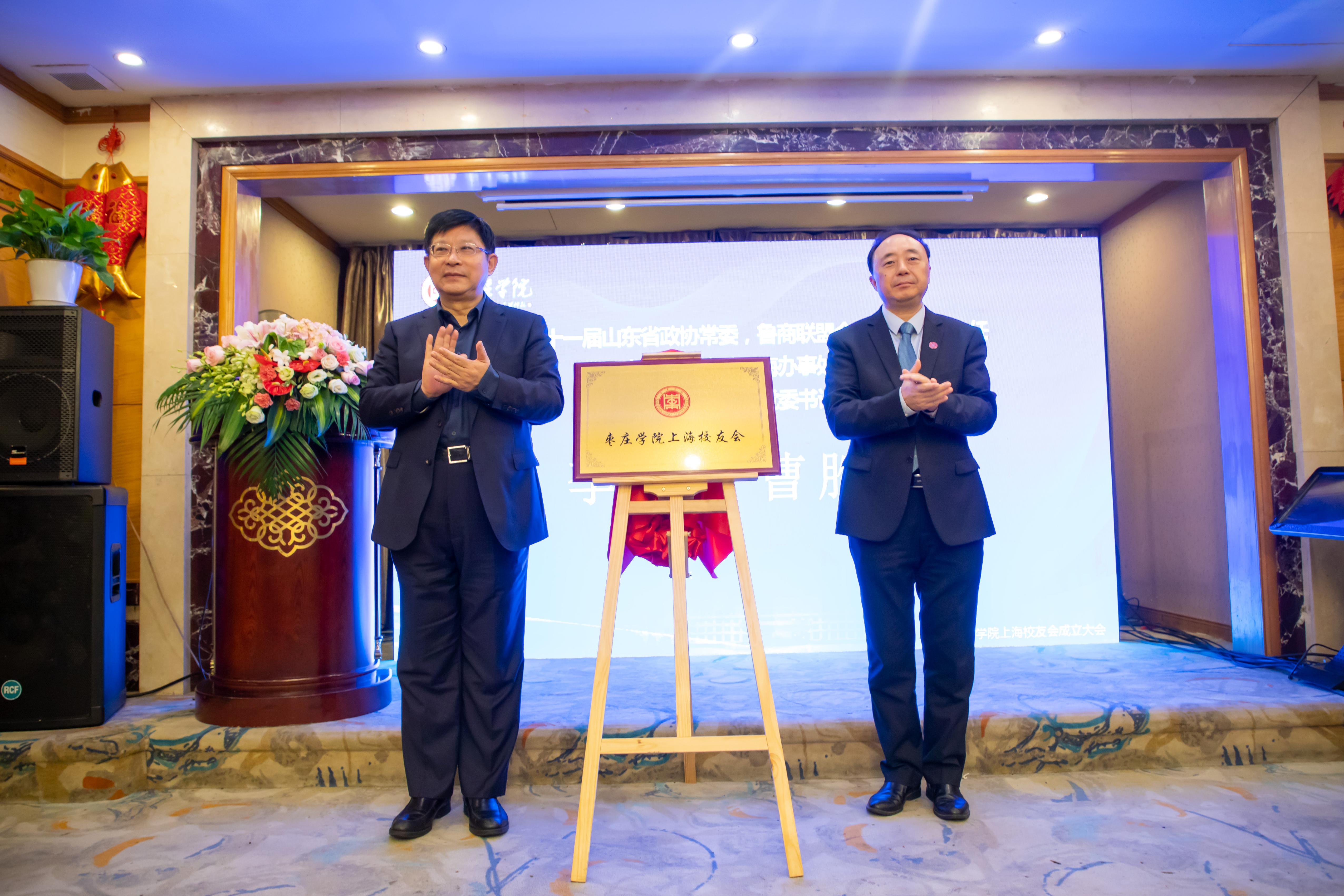 李斌、曹胜强共同宣布枣庄学院上海校友会成立并揭牌。