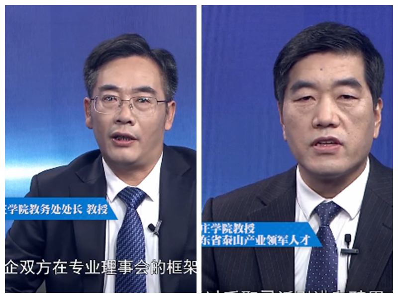 安涛从“八个共同”“四个对接”方面简要介绍了学校、企业双主体办学,开展深度合作的具体体现;赵峰结合自身经历,主要谈了枣庄学院的人才强校战略产生的积极影响。节目最后,播放了枣庄学院宣传片。