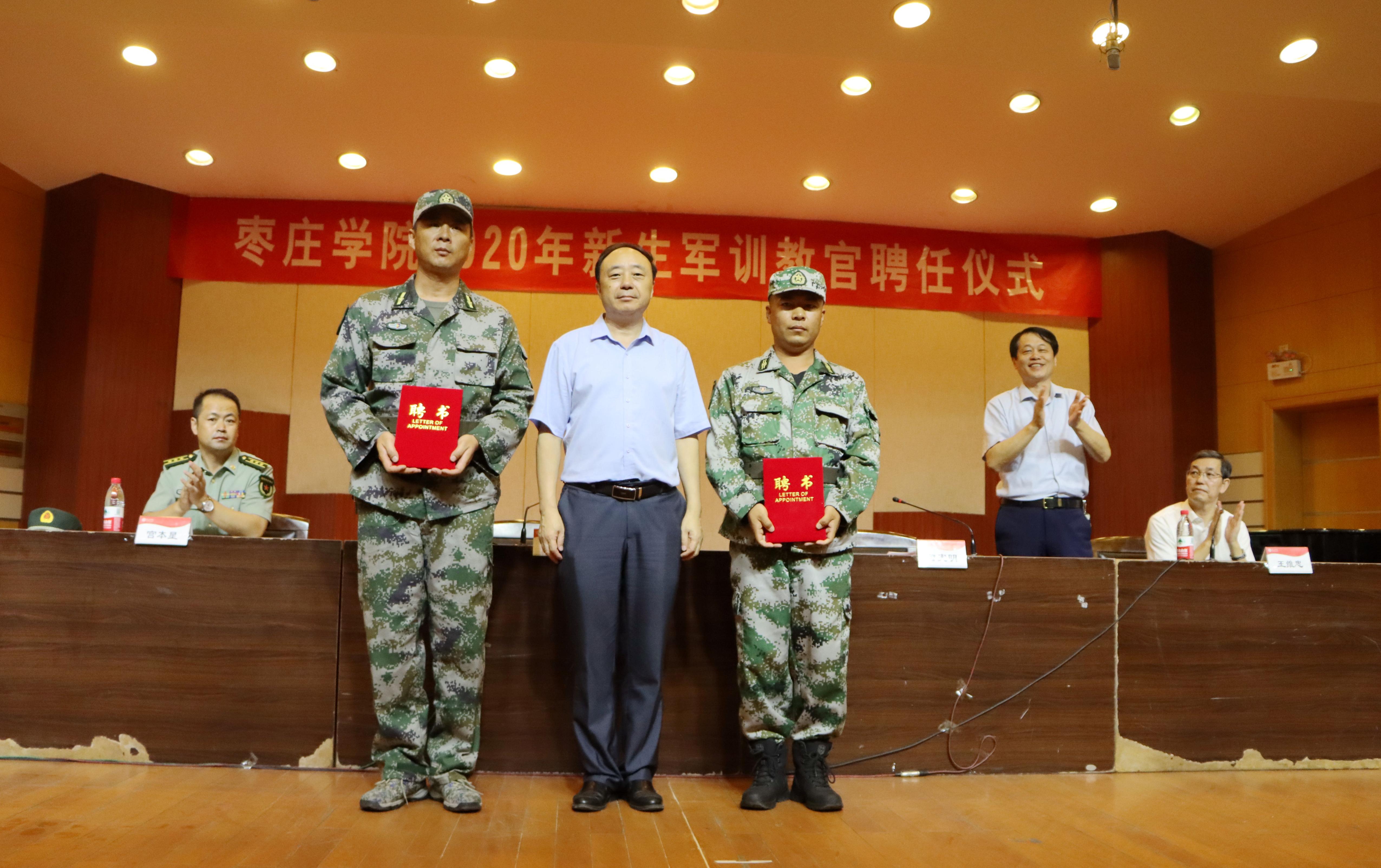 聘任仪式在庄严的国歌声中拉开帷幕,武装部部长王维忠宣读《关于聘任于帅等同志担任枣庄学院2020级新生军训教官的决定》。随后,曹胜强为军训教官团指导员颁发聘书,主席台领导共同为军训教官颁发聘书。