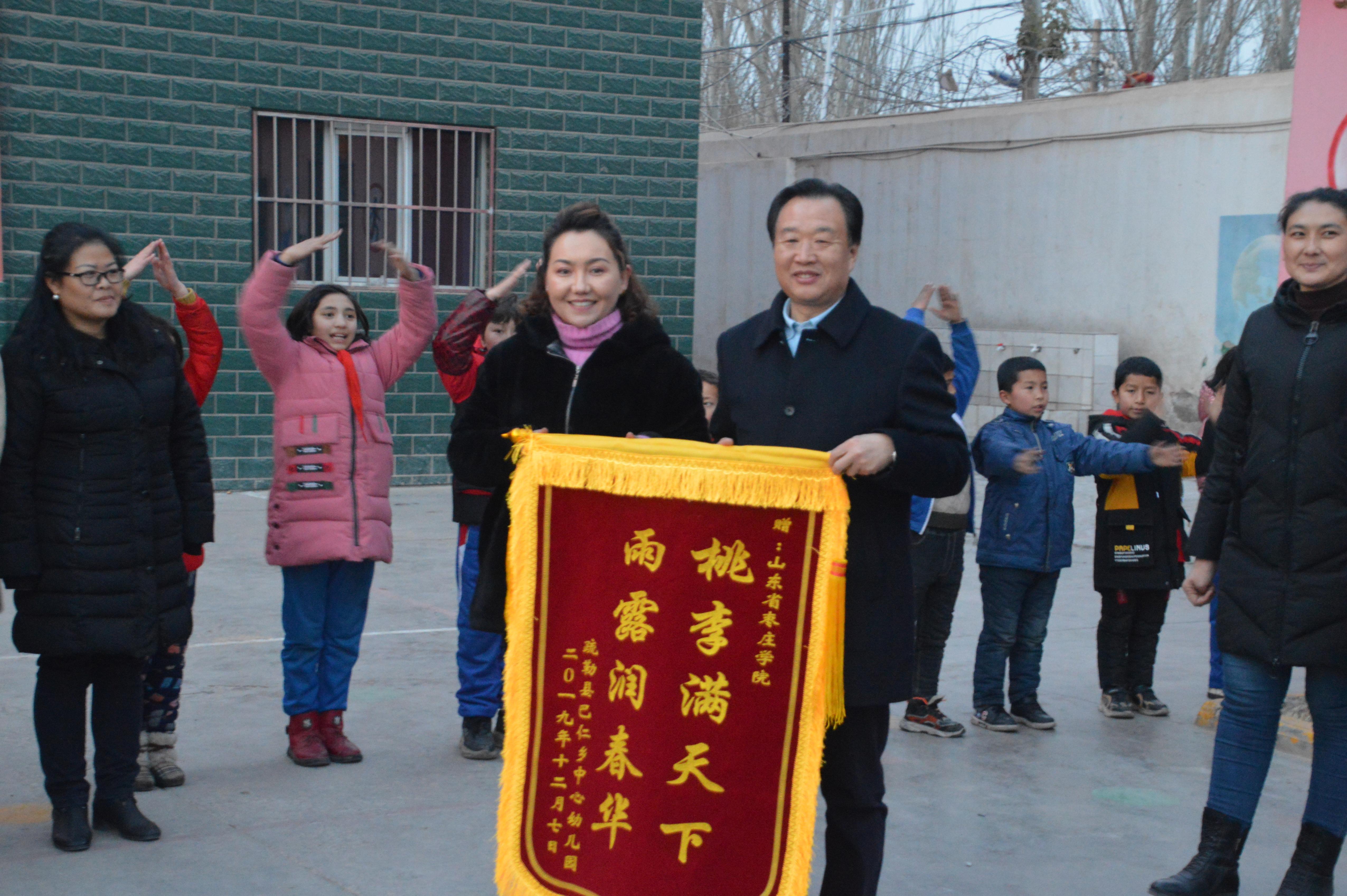 12月9日下午,校长李东一行到喀什地区疏勒县看望我校援疆实习支教师生。山东省援疆工作指挥部党委副书记、喀什地委组织部副部长邓泽宇,东营市援疆工作指挥部党委书记、指挥、疏勒县委副书记曹永湖,山东省援疆指挥部干部人才组副组长、喀什地区教育局党组成员、副局长崔升平,东营市援疆工作指挥部副指挥、疏勒县委常委、副县长杨凯,东营市援疆工作指挥部财务民生组副组长、疏勒县教育局副局长李志福等同志陪同看望和调研。