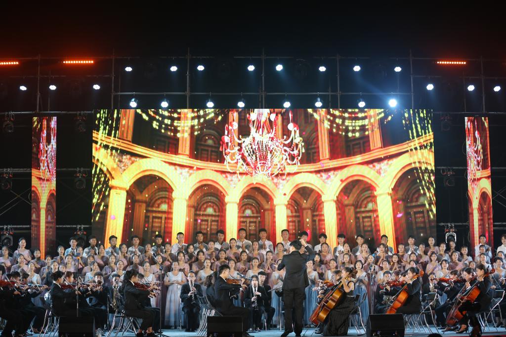 70年风雨兼程,披荆斩棘,成就伟大;新时代放飞梦想,祝福祖国,再创辉煌!9月17日晚,枣庄学院“辉煌七十载 筑梦新时代”庆祝中华人民共和国成立70周年暨2019年迎新生文艺晚会在学校体育场举行,枣院师生用歌声和激情致敬伟大的新时代,向中华人民共和国成立70周年献礼。全省第二批“不忘初心 牢记使命”主题教育省委第二巡回指导组领导、学校党政领导、师生代表及2019级全体新生上万人共同观看了演出。