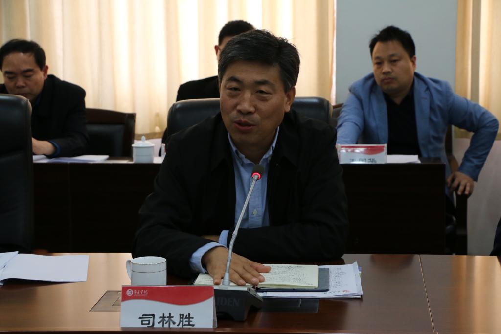 司林胜代表商丘师范学院对我校的热情接待表示衷心感谢,对我校近年来在教育教学改革、产教融合、校企合作、应用型人才培养、援疆支教等方面取得的成绩表示由衷钦佩。司林胜表示,枣庄学院在办学思路和发展改革上是有大气魄、大目标、大系统、大战略、大投入的,对商丘师范学院很有学习借鉴的意义。司林胜从办学历史、办学规模、办学思路等方面对商丘师范学院的基本情况做了简要介绍。商丘师范学院2016年正式步入转型发展的道路,围绕转型发展确立了应用型人才培养模式、双师双能型师资队伍建设等八大系统工程,当前各项工作正在积极探索实践中。司林胜希望通过此次赴枣庄学院考察交流,可以充分学习枣庄学院在转型发展中的成功经验,尤其是在产教融合、校企合作等方面的先进做法,期待开启两校之间全面合作的历程,建立长久互动的合作关系。