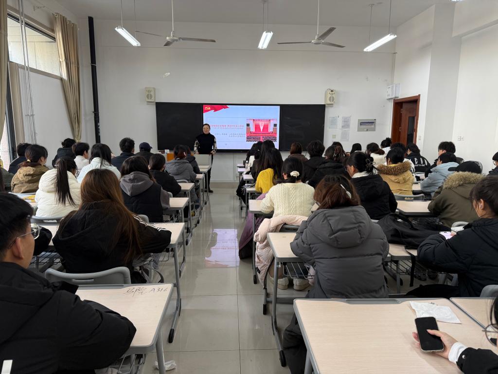 为推动党的二十届四中全会精神在校园落地生根、入脑入心,引导师生准确把握全会核心要义与实践要求,12月26日,马克思主义学院院长、党的二十届四中全会精神山东高校宣讲团成员董嫱嫱以《以历史主动精神奋进新征程 以实干担当谱写育人新篇章》为题,为学院全体师生带来一场内涵丰富、思想深刻的专题宣讲报告会。学院领导班子、全体教职工及学生代表现场聆听学习。