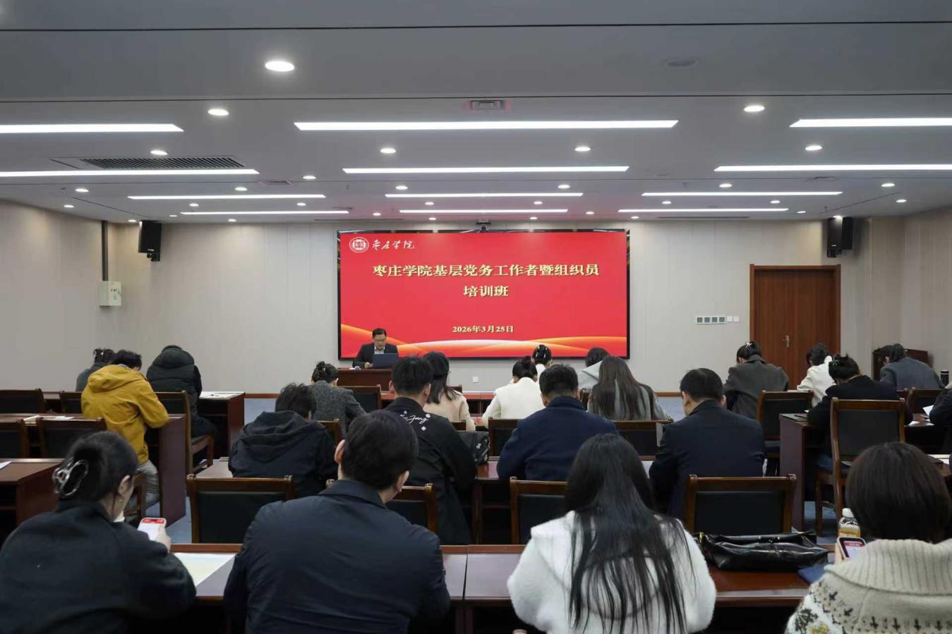 为进一步规范发展党员工作程序,严明工作纪律,切实提升基层党务工作者和组织员的业务能力与责任担当,3月25日下午,党委组织部在薛城校区明理楼430会议室举办了2026年基层党务工作者暨组织员培训班,全校各基层党务工作者、组织员、党支部书记参加培训。