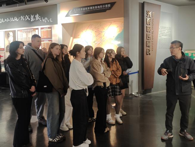 在台儿庄大战纪念馆,俄罗斯交换生聆听历史讲解、瞻仰革命史料,共同缅怀先烈、致敬英雄,在共同的反法西斯记忆中增进对历史的理解。