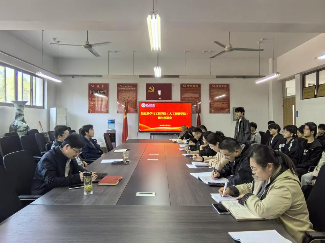 为扎实推进树立和践行正确政绩观学习教育,强化问题导向,着力破解师生实际难题,近日,信息科学与工程学院(人工智能学院)在市中校区理工楼2121会议室召开师生代表座谈会,会议由学院党委书记姬广华主持,学院领导、教师代表与学生代表共同参加。