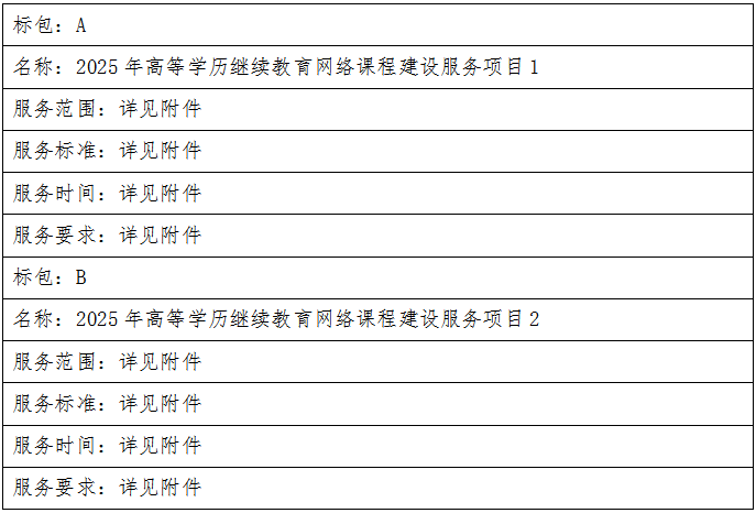 二、项目名称:枣庄学院2025年高等学历继续教育网络课程建设服务项目