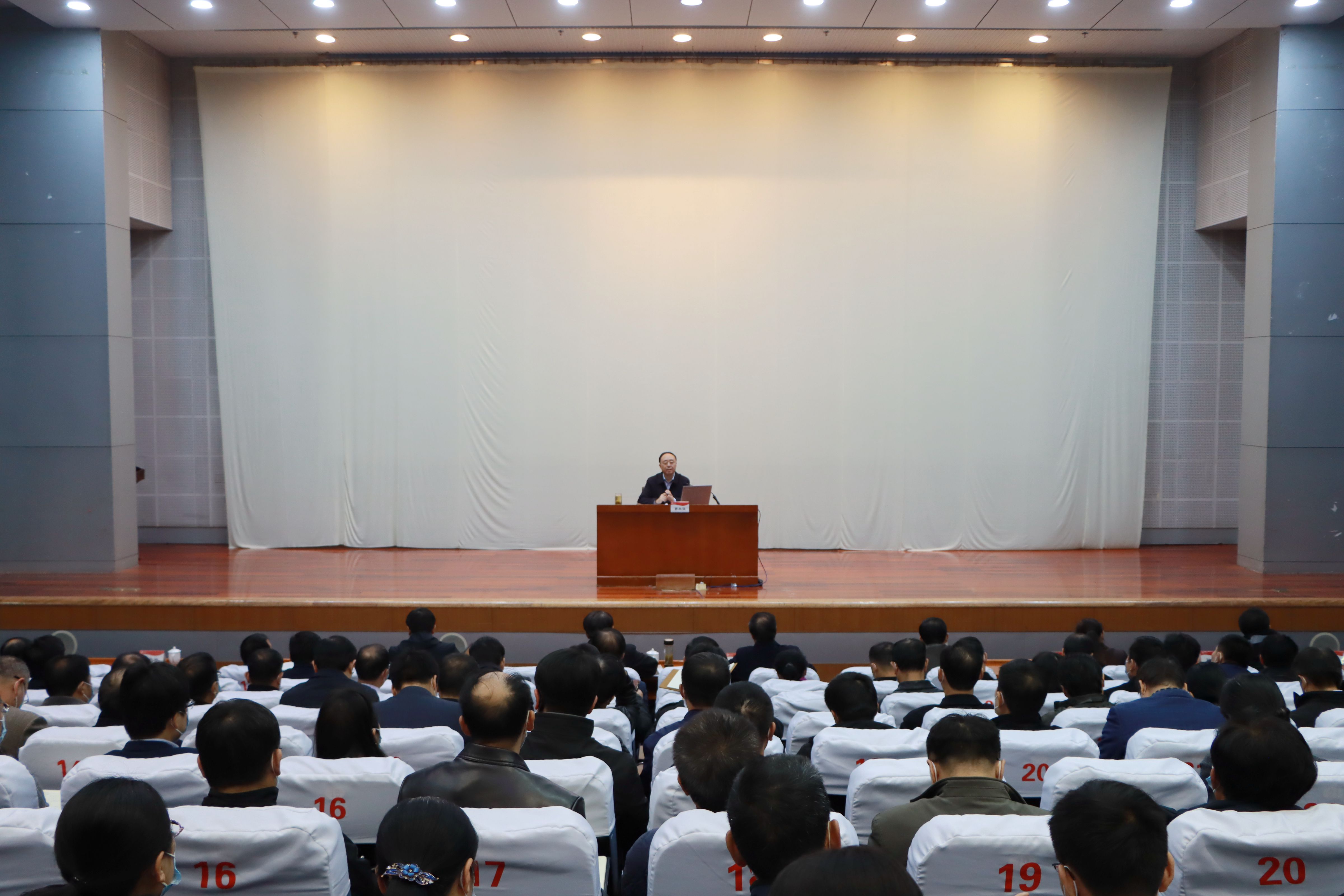 2020-12-0412月3日下午,校党委委员、纪委书记、省监委驻枣庄学院监察专员路绪剑以“全面从严治党永远在路上”为题,在综合楼学术报告厅为师生作报告,马克思主义学院部分教师和机电工程学院400余名学生到会聆听报告。 路绪...