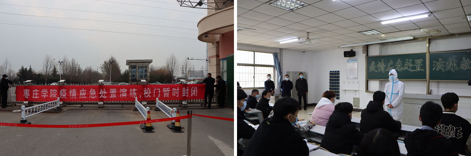 为有效应对新冠肺炎突发疫情,全面提升我校疫情防控组织协调和应急处置能力,根据上级有关要求,12月9日上午,我校在市中校区举行2021年冬季突发新冠肺炎疫情应急处置演练。校长李文喜出席并作动员讲话,校党委委员、副校长丰雷主持活动。市中区教体局以及齐村镇教育、卫生、疾控部门的领导专家应邀到场观摩指导。
