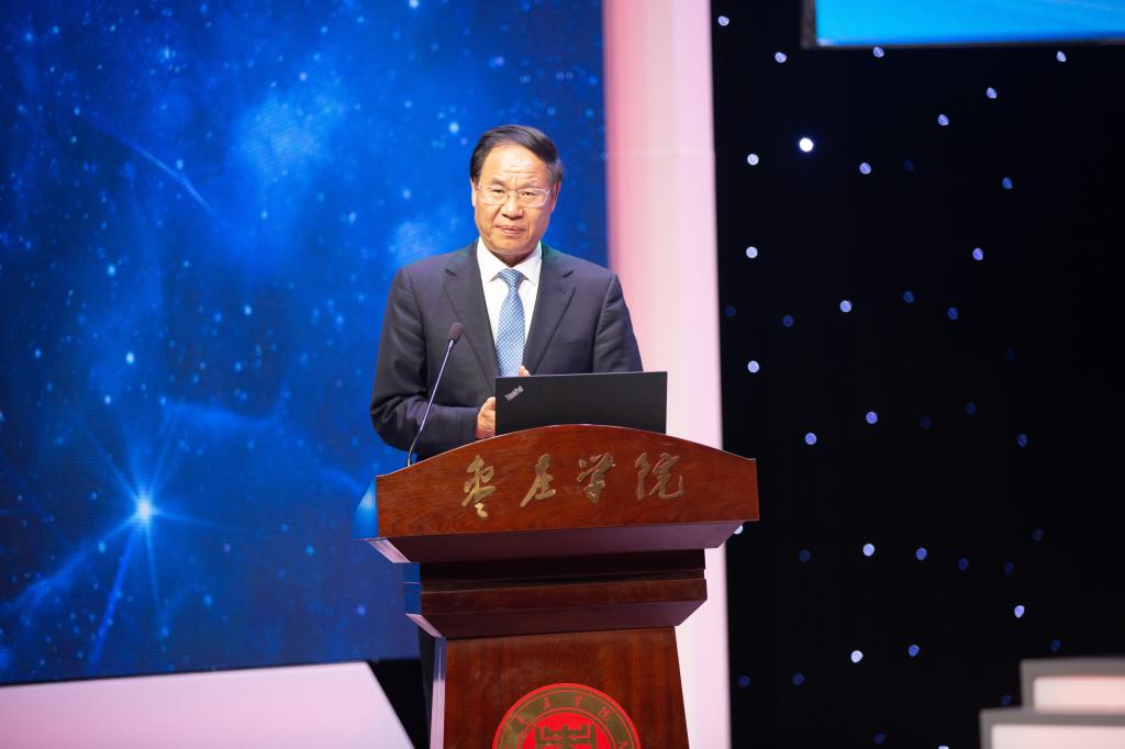 曹胜强以“两个结合”推动中国式应用型大学创新发展为题,深入阐释了新时代赋予高教人的新要求、新使命、新担当。曹胜强指出,“两个结合”是“中国式应用型大学”的行动指南和根本遵循,是马克思主义中国化的新高度新境界,要从“两个结合”看新时代中国应用型大学的历史方位,要以“两个结合”引领中国式应用型大学建设。中国特色是中国式应用型大学的本质要求,山东省应用型大学建设应与山东实际、齐鲁文化相结合。坚持“两个结合”,核心在于“走自己的路”,关键在于坚定文化自信,目标在于培育时代新人。枣庄学院以“两个结合”为引领,紧紧围绕立德树人根本任务,奋力推进国内一流应用型大学建设,走出了一条产教融合、协同育人的高质量发展之路:一是持续推进向应用型转型发展;二是全面深化产教融合协同育人,形成了“123456”应用型人才培养枣庄学院模式;三是精心培育时代新人和先锋力量,遵循新时代思想政治工作规律、学生成长成才规律,实施“777互联互通育人工程”。曹胜强表示,在新的征程上,枣庄学院将在习近平新时代中国特色社会主义思想指引下,奋力建设国内一流应用型大学,为建成社会主义现代化强国贡献应有力量。