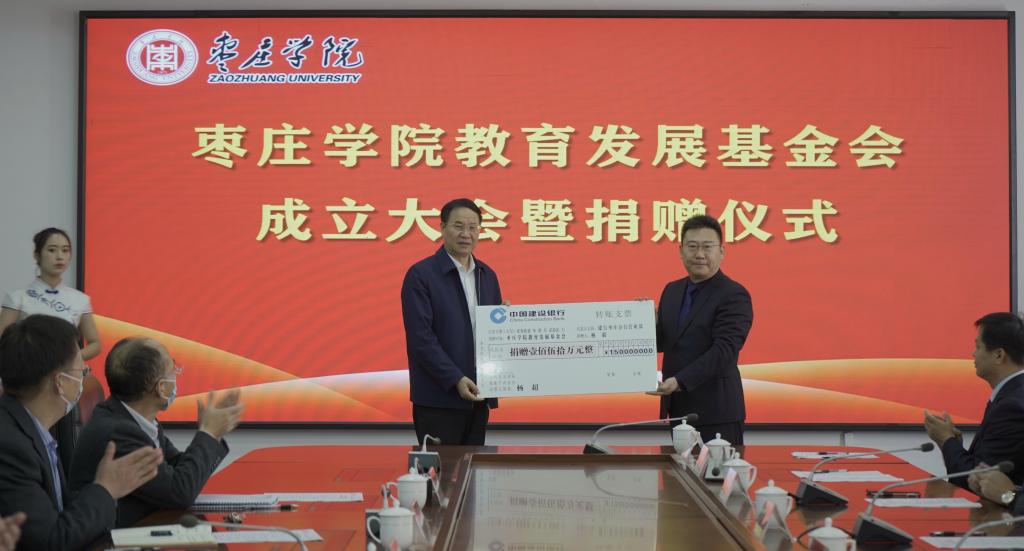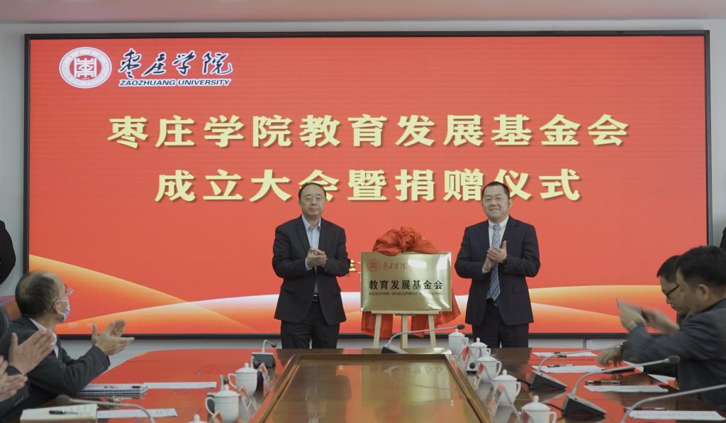 仪式上,曹胜强和崔震共同为枣庄学院教育发展基金会揭牌。