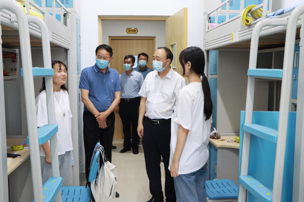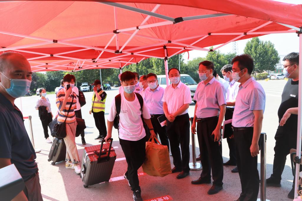 学校党委高度重视迎新工作,14日、17日新生报到期间,校领导曹胜强、李文喜、丰雷、安涛、张昌林在办公室、学生工作处、保卫处、后勤服务处等部门负责人陪同下,先后多次走访老校区和新校区各迎新工作点,了解新生报到情况及迎新工作开展情况。校领导对各部门特色纷呈的迎新工作给予充分肯定,对工作人员的辛勤付出表示感谢,并希望大家密切配合、通力合作,为新生提供优质热情的服务保障,确保迎新工作热情周到、安全有序,让学生舒心、让家长放心。校领导心系新同学, 还先后深入学生餐厅、宿舍看望2021级新生,了解关心他们入学后的生活情况。