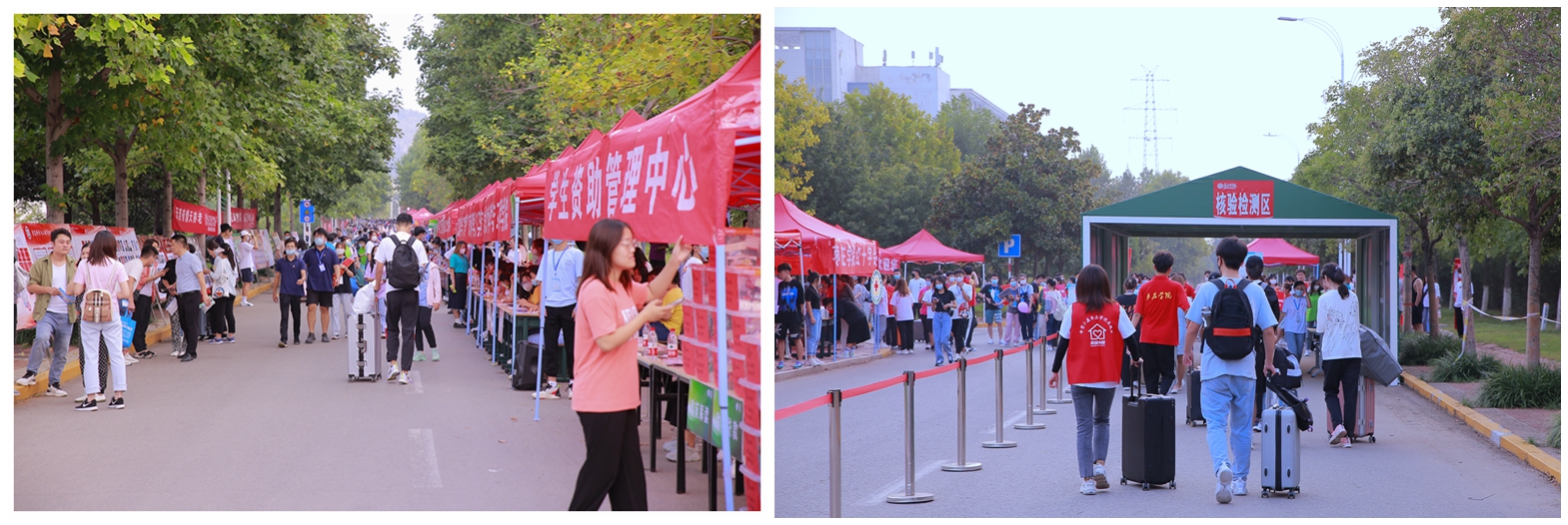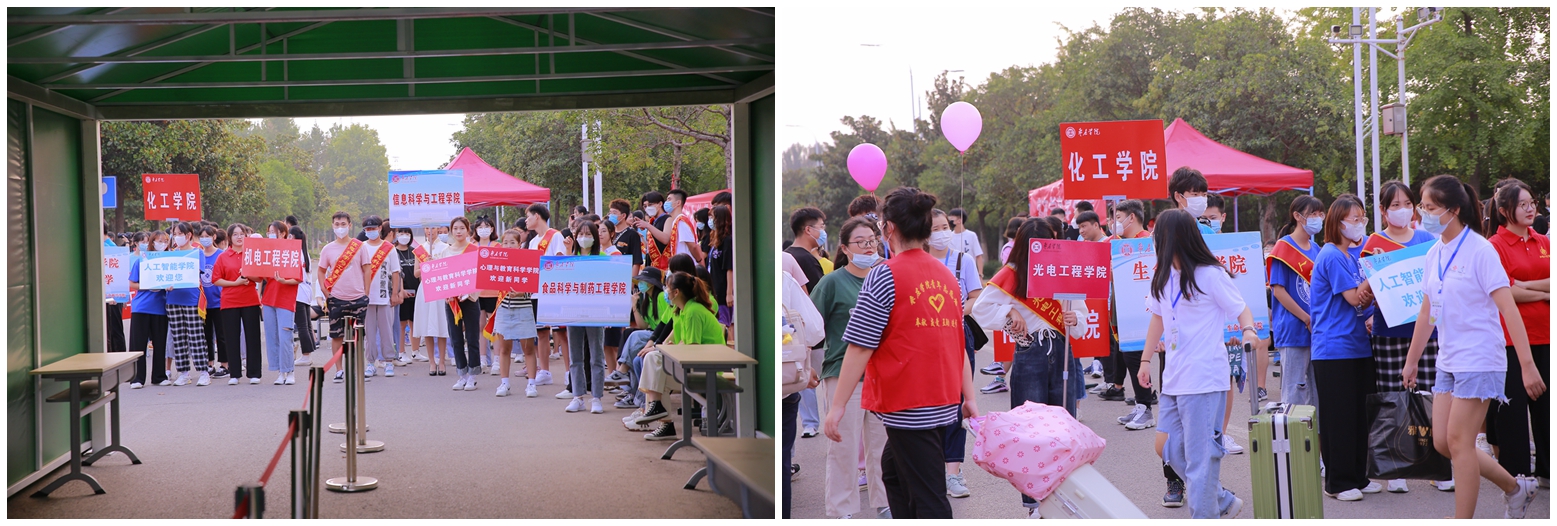 迎新现场人头攒动,热闹非凡。各学院结合专业特点,设立了各具特色的新生报到接待处,开展了别具特色的迎新活动。细致温馨的报到指引,温暖贴心的志愿服务,迎新工作人员用一张张热情的笑脸、一句句亲切的问候、一项项贴心的服务,让来自祖国各地的莘莘学子,倍感亲切、深受鼓舞。
