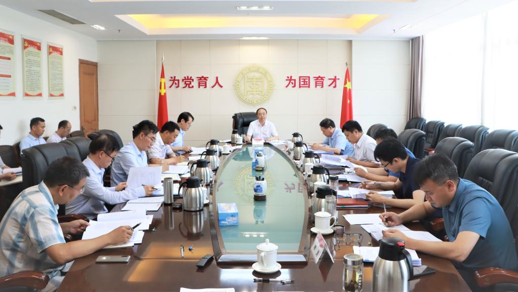 7月24日下午,我校在综合楼八楼会议室召开党史学习教育领导小组第四次会议,校党委书记、党史学习教育领导小组组长曹胜强主持会议并讲话,党史学习教育领导小组成员参加会议。