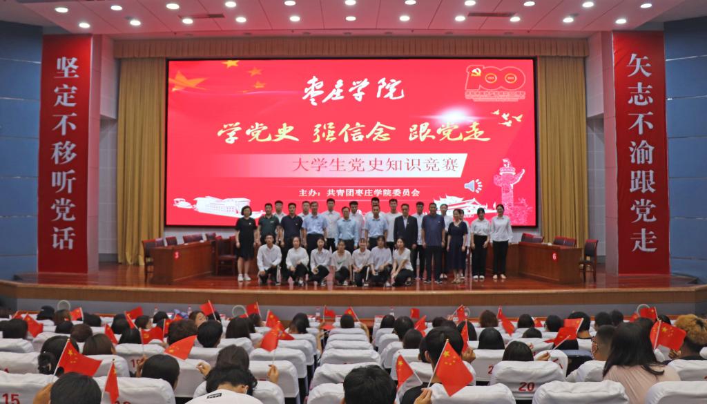 为庆祝中国共产党成立100周年,回顾党的光辉历程,激励引领青年大学生知史爱党、知史爱国,扎实深入开展党史学习教育,6月30日晚,由校团委主办的“学党史、强信念、跟党走”大学生党史知识竞赛在综合楼报告厅举行。校党委委员、宣传部部长张昌林出席活动,学生工作处处长王维忠、校团委书记袁俊现、马克思主义学院院长陶道强、政治与社会发展学院党总支书记蔡永清及各学院学生代表参加了活动。