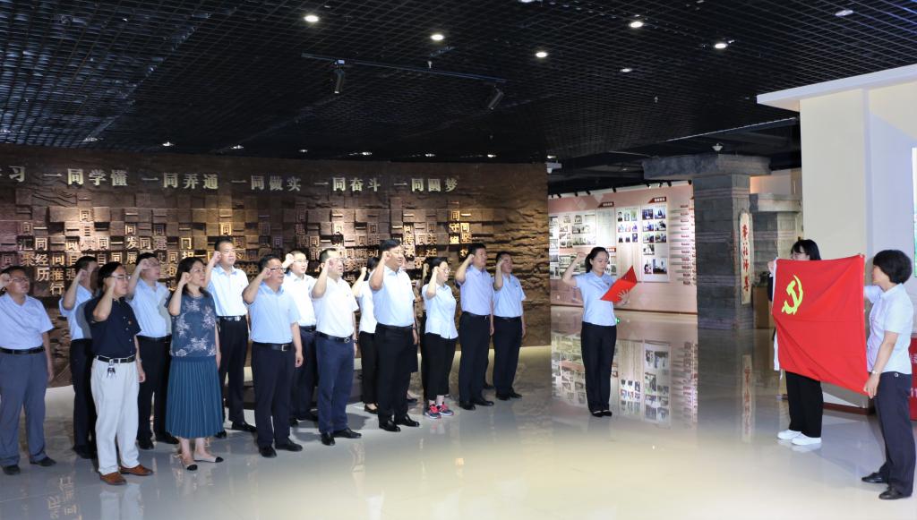 随后,崔震一行参观了我校校史馆,了解我校历史沿革、教育教学、学科科研、人才队伍等情况,共同感受枣庄学院建校50年来的光辉历程。分行在校史馆门厅和我校计划财务处党支部党员一起重温入党宣誓词,并在学校图书馆门前合影留念。
