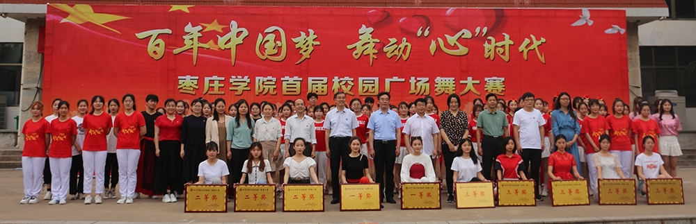 为庆祝建党一百周年,贯彻落实爱国主义教育,舞动青春力量,展示我校大学生心系祖国、与祖国脉搏一起跃动的精神面貌,6月9日,5·25心理健康节系列活动之“百年中国梦、舞动‘心’时代”枣庄学院首届校园广场舞大赛决赛于五四青年广场举行。校党委委员、副校长安涛出席比赛现场并为获奖队伍颁奖,学生工作处相关人员及二级学院老师代表共同观摩比赛。