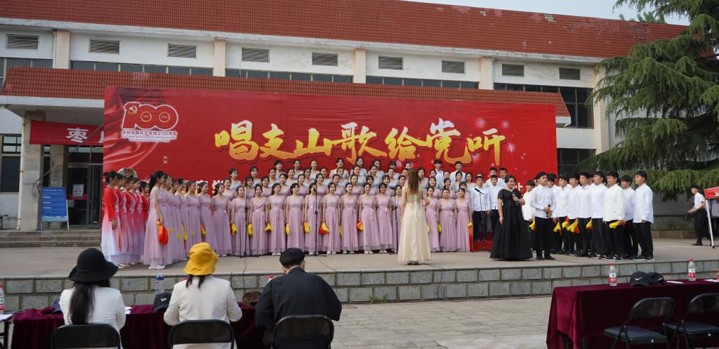 为庆祝中国共产党成立100周年,根据学校党史学习教育有关安排,5月12日下午,以“唱支山歌给党听”为主题的枣庄学院庆祝中国共产党成立100周年大学生合唱比赛在五四青年广场举行。校党委副书记曾宪明、省委党史学习教育第四巡回指导组成员苗素军出席比赛,相关部门负责同志与3000余名师生代表共同观摩比赛。
