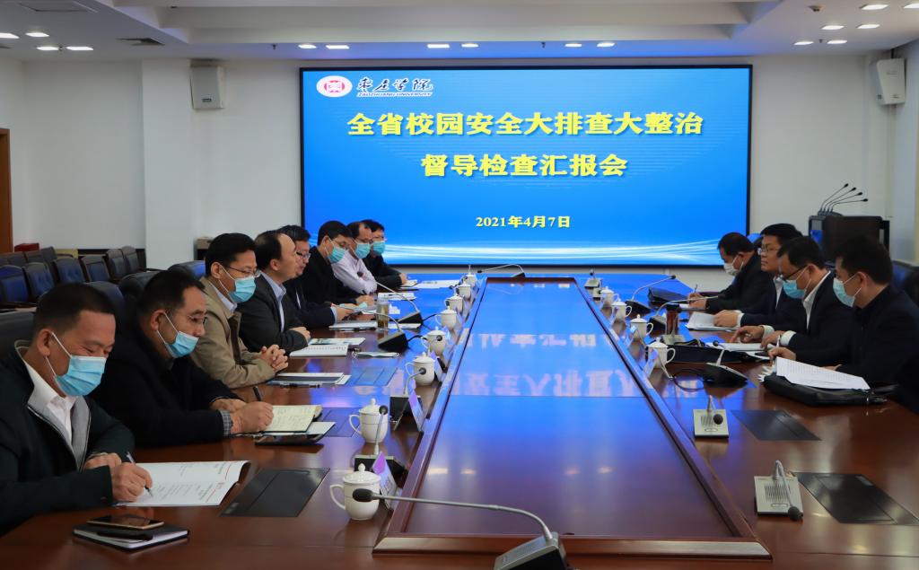 丰雷对督导组莅临指导表示感谢。他指出,督查组的肯定是对我校安全工作的一种鼓励,督导组指出的问题是对学校的关心,也是学校今后安全工作努力的方向。学校将严格按照省教育厅相关文件精神,坚持问题导向,根据督导组反馈意见制定整改计划,挂图作战,彻底自查整改,坚决消除各类安全隐患;提高政治站位,落实责任,始终把校园安全摆在第一位,全面提升师生安全意识,确保校园安全稳定。