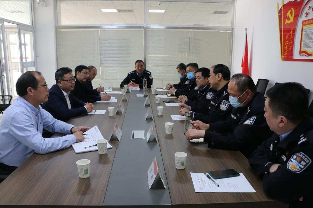 4月9日上午,枣庄市市中区公安分局党委副书记、政委刘成彬一行8人来校考察调研,校党委委员、副校长丰雷与刘成彬一行在警务室会议室举行座谈,双方就进一步加强警校联动等事宜进行了亲切交流。保卫处、学生工作处等部门负责人参加交流。