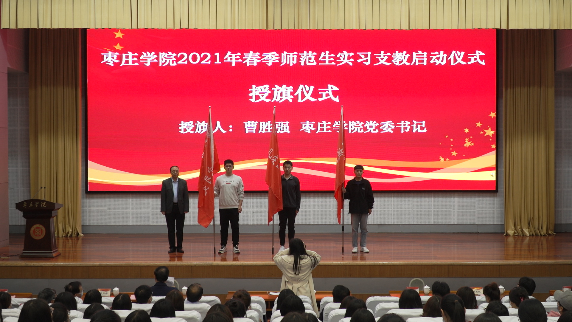 3月24日下午,我校在综合楼报告厅举行枣庄学院2021年春季师范生实习支教启动仪式,为即将走向实习支教岗位的师范生送行。校领导曹胜强、李文喜、安涛、张昌林,山亭区教体局副局长许来枫、峄城区教学研究中心副主任栗樾、台儿庄区教体局副局长龚澜航出席启动仪式。办公室、团委、学生工作处、教务处、保卫处、计划财务处、招生就业处等部门负责人,相关二级学院院长、书记,全体2021年春季支教学生参加启动仪式。仪式由副校长安涛主持。