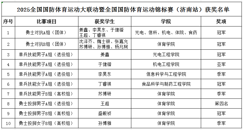 学校始终高度重视国防教育与学生综合素质培养,将国防体育赛事参与作为深化国防教育、锤炼学生意志品质的重要抓手。此次赛事不仅为学生搭建了交流学习、切磋技艺的平台,也进一步厚植了师生国防意识,锤炼了拼搏进取、永不言弃的精神品质。下一步,学将持续深化国防体育教育,以赛促学、以赛促练,不断提升学生综合素养,培育更多有理想、敢担当、能吃苦、肯奋斗的新时代青年。