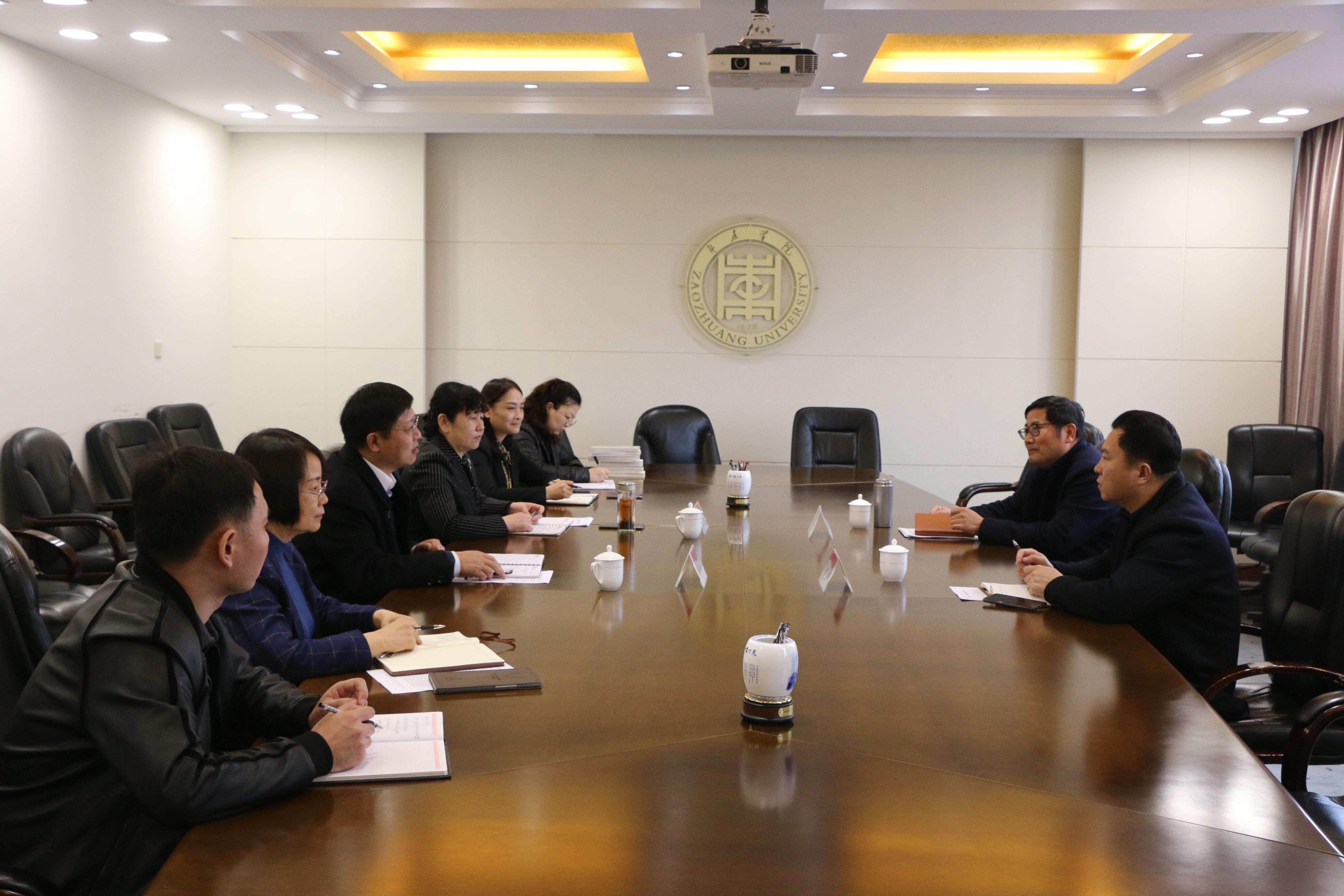 3月9日下午,枣庄市社科联副主席金殿国、学术部部长陈净来我校开展社会科学研究工作调研,随后双方在综合楼七楼会议室召开座谈会。校党委委员、副校长李目海出席座谈会,枣庄市人大副主任、枣庄发展研究院院长徐玲,社科处处长何芳,大运河研究院副院长吴元芳及部分工作人员参加座谈。会议由何芳主持。