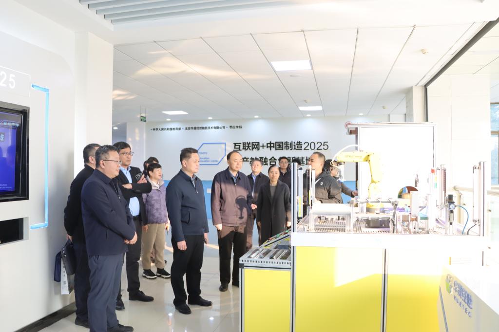 座谈交流前,在丰雷、闫昕陪同下,李京平、曹胜强一行参观了我校ICT产教融合创新基地、微纳技术实验室(院士工作站)、中国制造2025产教融合创新基地、世界语博物馆。