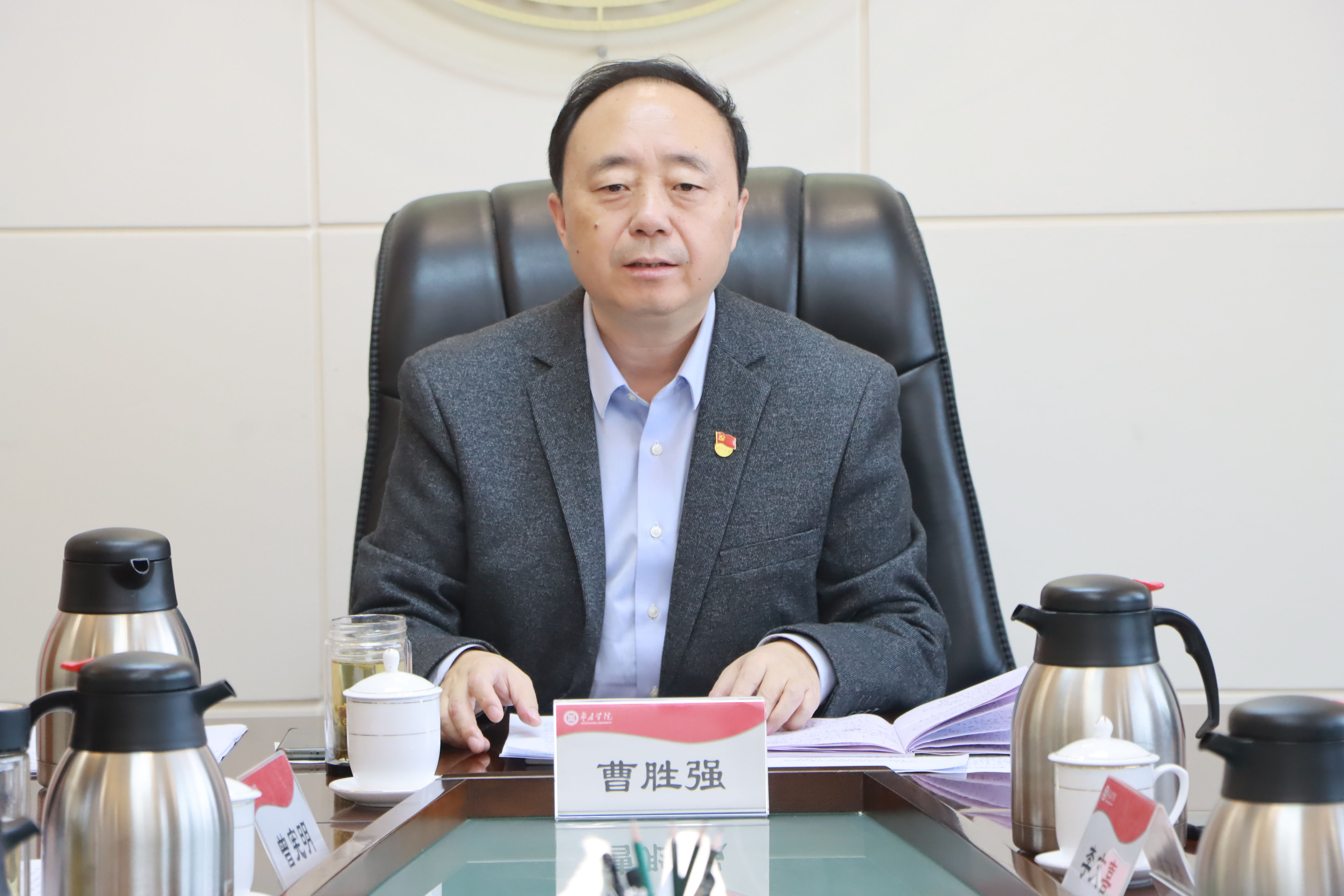 2月23日下午,校党委理论学习中心组在综合楼八楼会议室召开集体学习会议,集中学习研讨习近平总书记在党史学习教育动员大会上的重要讲话精神。校党委书记曹胜强主持学习并讲话,校领导李文喜、曾宪明、李目海、路绪剑、丰雷、安涛、孙正、张昌林、林勇,纪委(监察专员办公室)、办公室等部门负责人参加学习。