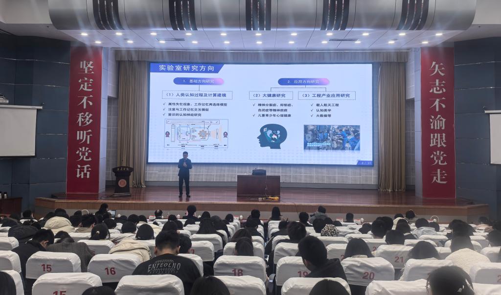 褚夫敏在致辞中指出,心理学是学校较早设立的本科专业之一,人工智能领域是学校服务地方的重点方向之一。近年来学校不断加强相关学科专业建设与交叉融合,持续推进科技创新与社会服务协同发展,在科学普及、心理健康教育和学生全面发展等方面取得了积极成效。两位专家的报告有助于大家更好地理解前沿科技,提升心理素养,启发大家在学习、工作和生活中更科学地应对压力、追求幸福。希望大家积极思考、主动交流,深入领会人工智能与心理学融合发展的核心要义,切实提升自身的科学素养和创新思维。