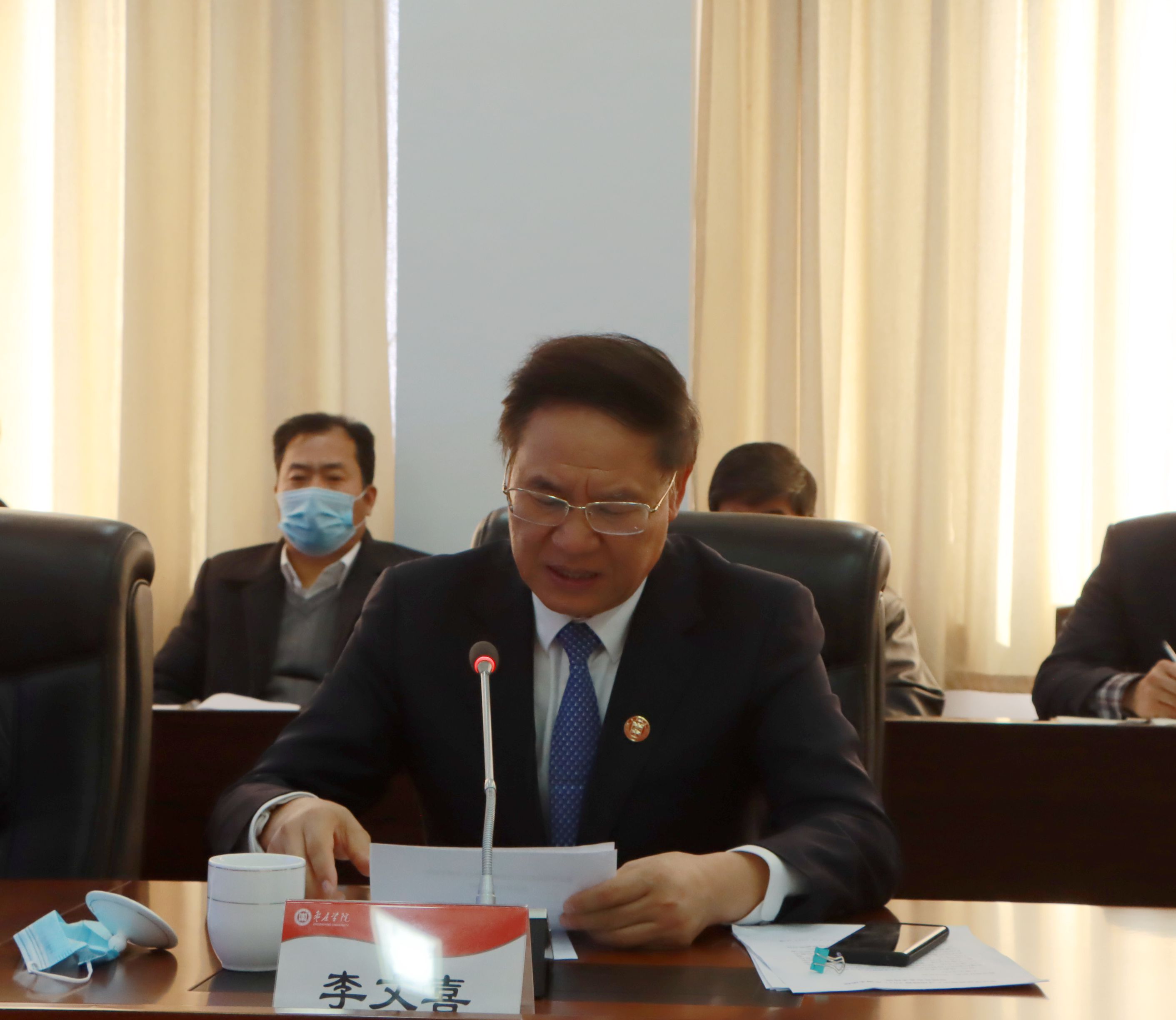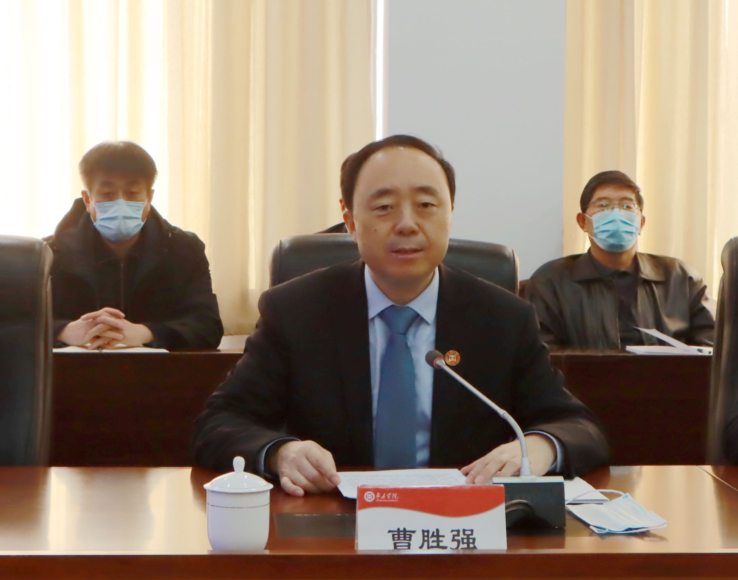 1月29日下午,我校在综合楼三楼会议室召开2021博士论坛新闻发布会。校党委书记曹胜强,校长李文喜,副校长明清河,组织部部长孙正、宣传部部长张昌林、统战部部长林勇出席发布会。人事处、各二级学院院长、部分高层次人才代表参加发布会,中国网、齐鲁晚报、大众网、山东教育卫视、枣庄市电视台、指动枣庄等多家新闻媒体到场,厉兵秣马为我校2021博士论坛做好宣传报道准备。发布会由李文喜主持。