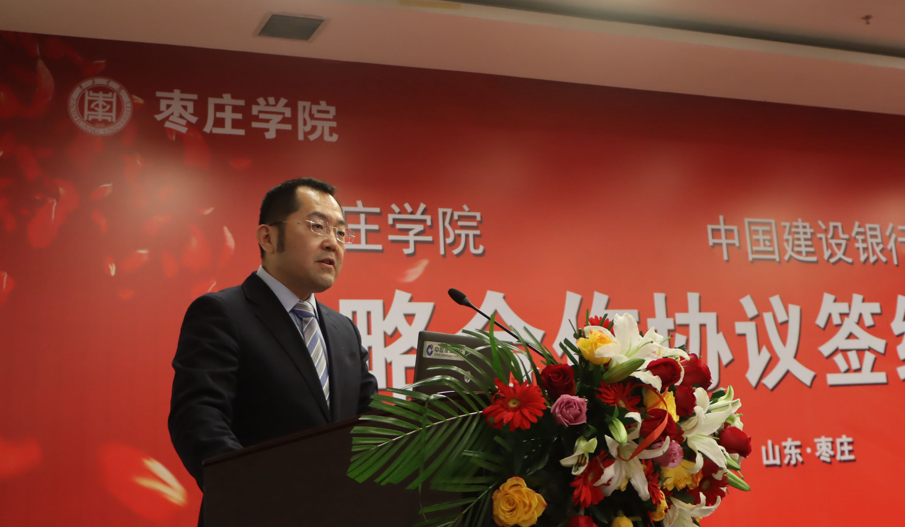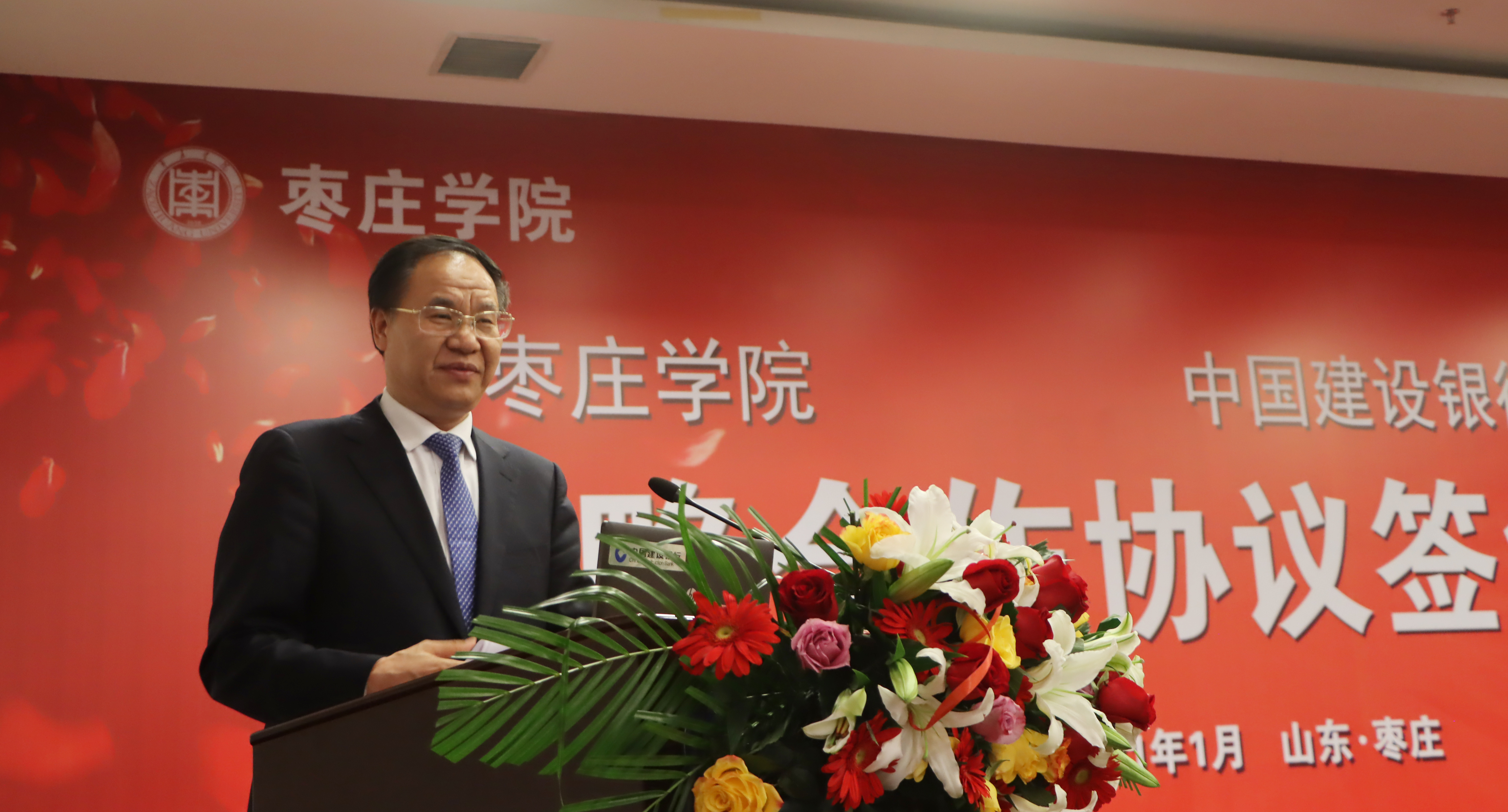 仪式上,李文喜从办学历史、招生规模、师资队伍建设、转型发展等方面简要介绍了我校的的基本情况,并重点介绍了近年来学校不断深化“产教融合、协同育人”应用型人才培养模式改革,探索形成的基于产教融合的“123456”应用型人才培养“枣庄学院模式”。李文喜强调,学校一贯注重加强多维度、多领域、多层次的银校合作,学校的发展离不开金融的大力支持和有力保障。多年来,我校与中国建设银行有着良好的合作基础,取得了积极成效,学校会一如既往继续加强与建行的交流合作。签订战略合作协议,是双方合作的新起点,将进一步提升合作高度、拓展合作范围,希望校银双方能够共同维护共建共享、互惠互利的合作理念,积极推动此轮银校合作协议条款的落实,不断积累合作经验,为学校师生提供高质量、高效率和高水平的服务;不断积累合作效益,提升知名度、信誉度和影响力;不断积累合作业绩,为全省高校银校合作提供示范性模式、标杆性做法;不断积累互信,积极探索拓展银校合作的空间、范围和深度,促进双方共同发展,实现互利共赢。