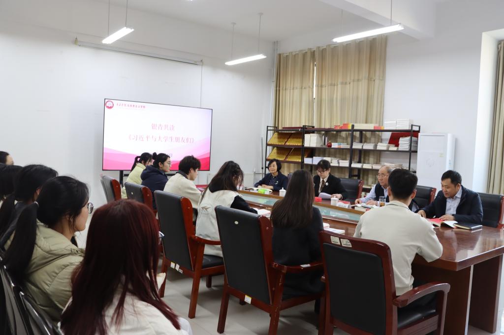 宣讲结束后,在马克思主义学院会议室举行了银青共读《习近平与大学生朋友们》座谈交流会,马克思主义学院党委书记仝锡文主持。参加活动的“五老”与青年师生代表们围坐一堂,共同研读《习近平与大学生朋友们》,分享学习心得。市“五老”关爱指导团成员、枣庄学院关工委副主任邓兴珍结合人生阅历,分享对书中故事的理解,解读书中的初心使命;青年师生们踊跃发言,从不同的角度谈感受、话心得,畅谈新时代的奋斗方向。“总书记的嘱托,让我们明确了成长的方向”“老前辈的经历,教会我们何为担当”……思想的火花在交流中碰撞,让“银青同行、共担使命”的信念,在每一个人心中落地生根。
