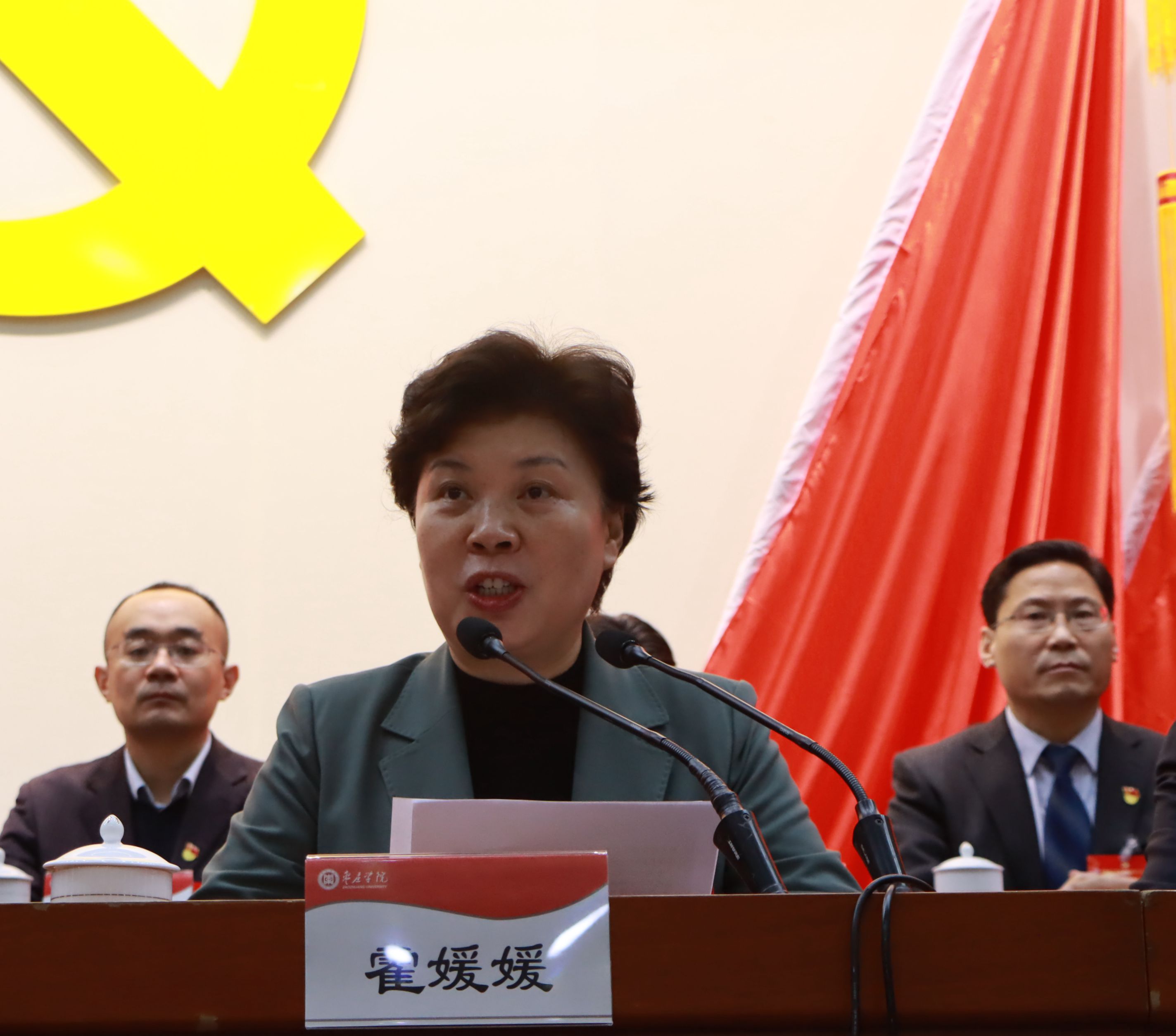 霍媛媛在讲话中代表中共枣庄市委对大会的召开表示热烈祝贺。她指出,枣庄学院积极服务新旧动能转换重大工程,精准对接枣庄“六大特色产业”,积极推进校地合作、校企合作,联合开展人才培养和科学研究,为推动区域经济发展提供了强大的人才和智力支持,为枣庄经济文化建设作出了积极贡献。希望枣庄学院继续扎根枣庄办大学,聚焦枣庄市确立的“先把经济搞上去”的目标定位,围绕“6+3”现代产业体系,进一步强化产教融合、深化校企合作,为推动我市产业体系优化升级、实现更高质量发展作出积极贡献。霍媛媛代表中共枣庄市委对即将选举产生的新一届学校党委提出四点建议:一是以党的政治建设为统领,全面推进党的各项建设;二是牢记办好社会主义大学使命,全面落实立德树人根本任务;三是全面深化教育改革,不断推进学校高质量发展;四是扎根枣庄办大学,持续深化校地全面战略合作。