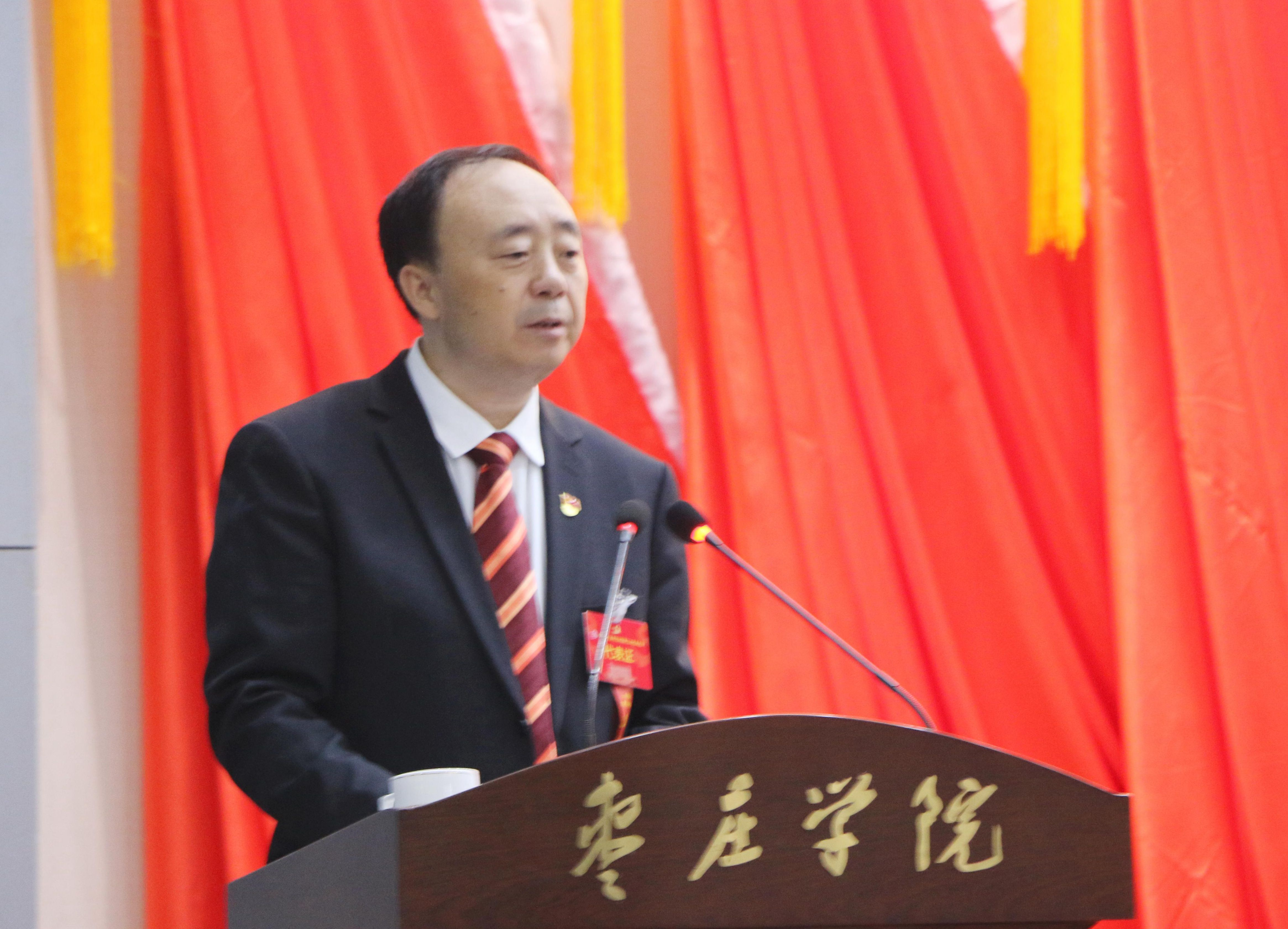 校党委书记曹胜强代表中共枣庄学院第二届委员会作了题为《站在新起点迈向新征程为建成国内一流应用型大学而努力奋斗》的工作报告。报告共分三部分,一是第二次党代会以来的工作回顾,二是新时代奋斗目标与发展战略,三是全面加强党的建设,为学校改革发展稳定提供坚强保障。