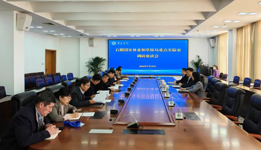 3月25日,校党委副书记、校长丛海林到石榴国家林业和草原局重点实验室开展调研并召开座谈会。校党委委员、副校长褚夫敏,党委委员、宣传部部长闫昕陪同调研。