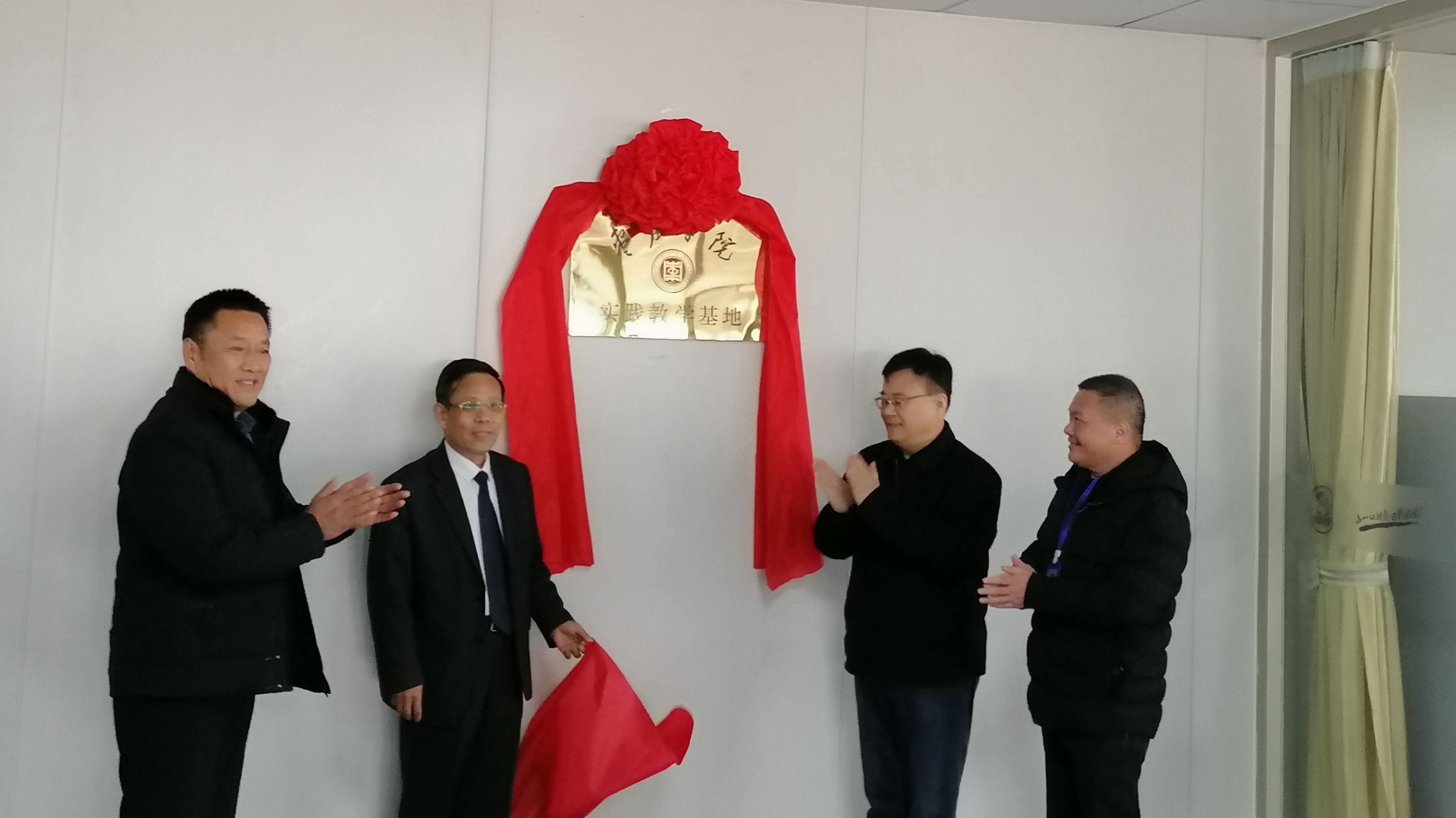 明清河和张峰共同为“枣庄学院教学实践基地”揭牌。
