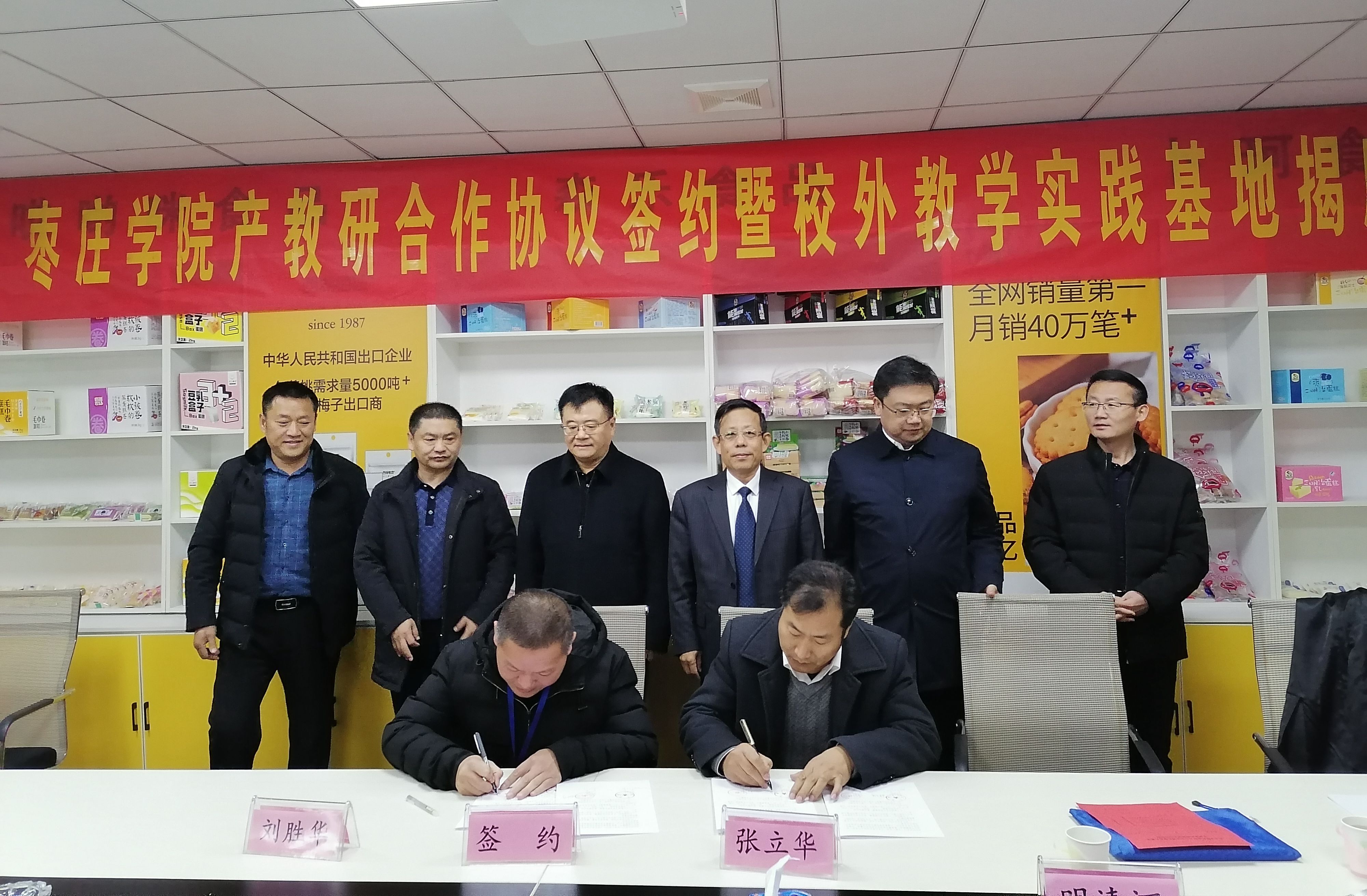 张立华代表食品科学与制药工程学院与刘胜华签订校企合作协议。