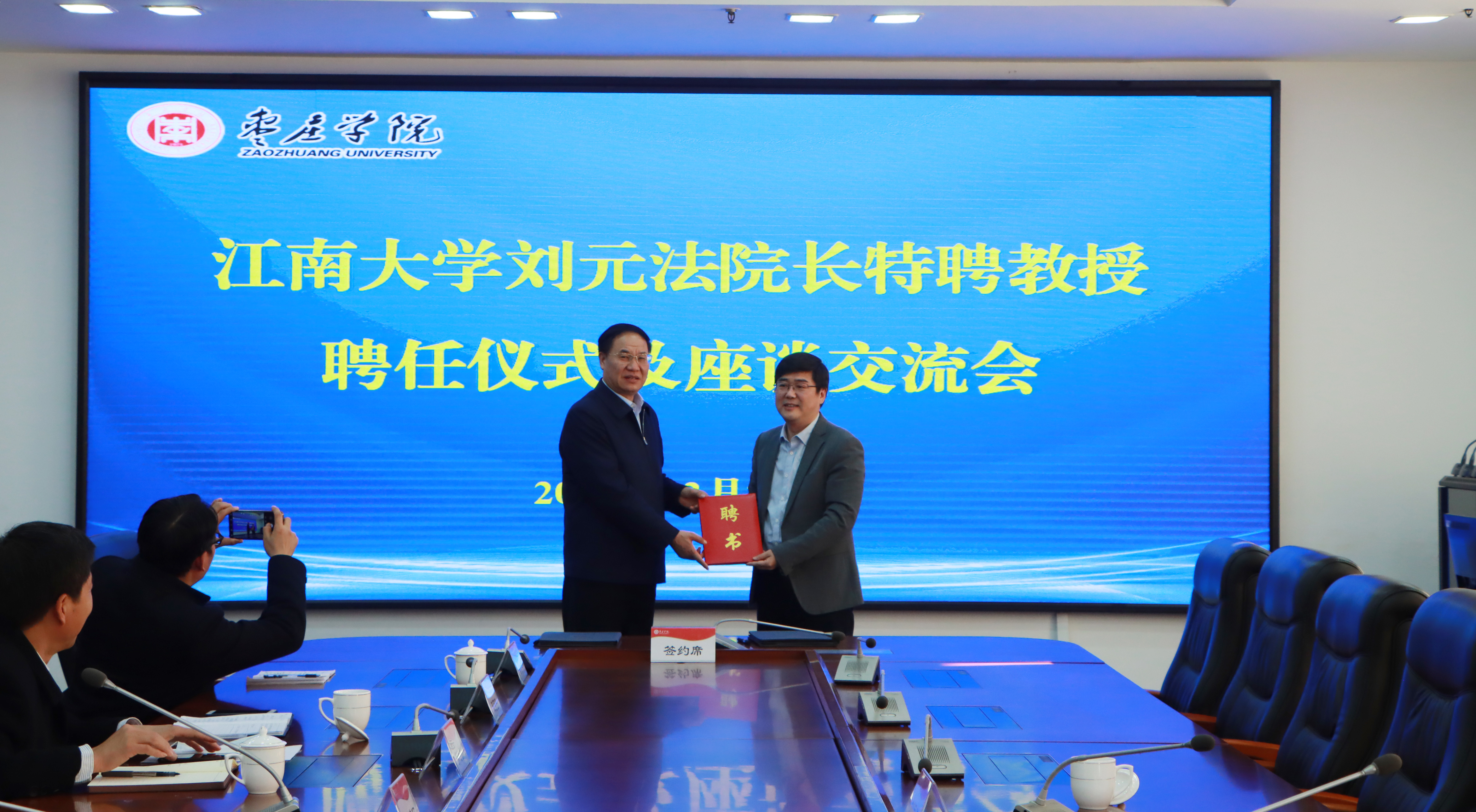 刘元法对学校给予的肯定和信任表示感谢,并简要介绍了江南大学食品学院的办学历史、办学特色以及学科建设情况。他表示,将借助江南大学的资源优势,履行好特聘教授岗位职责,今后将进一步加强与我校的合作,为推进枣庄学院的快速发展贡献自己的力量。食品科学与制药工程学院院长张立华简要介绍了学院的师资队伍、专业建设以及学科建设等基本情况。