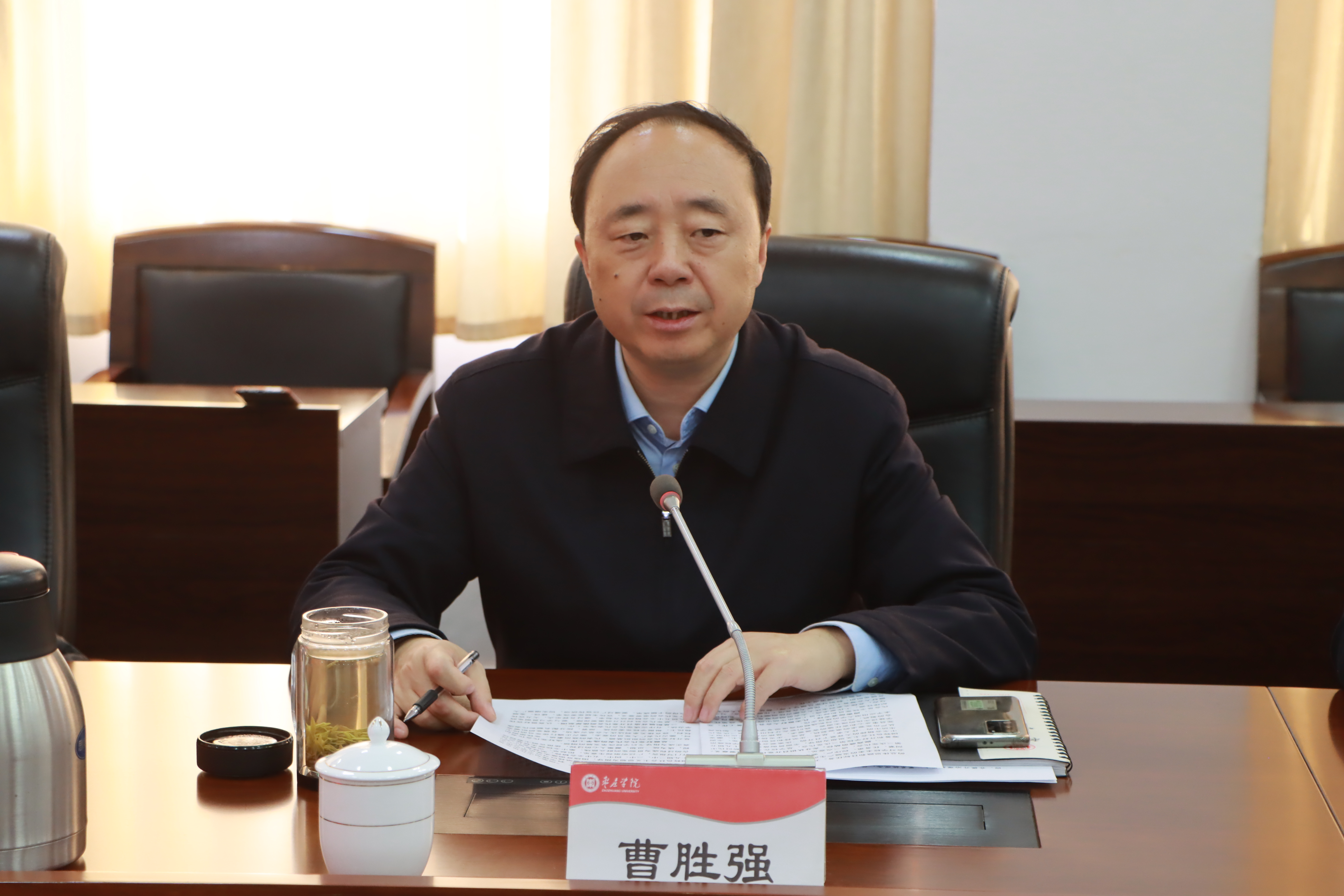 曹胜强要求,要周密部署安排,扎实做好大会各项筹备工作。一是起草好“两委”工作报告,使报告的主要精神真正成为指导今后学校改革发展的纲领;二是做好党代会代表的选举工作,有序完成党代会代表选举;三是积极营造召开党代会的浓厚氛围,切实增强广大党员师生员工的使命感、责任感和荣誉感。曹胜强强调,要加强组织领导,按照学校党委的统一部署,认真做好各项组织工作和思想政治工作,落实责任、严明纪律、统筹兼顾,加强协调配合,确保筹备工作整体推进。