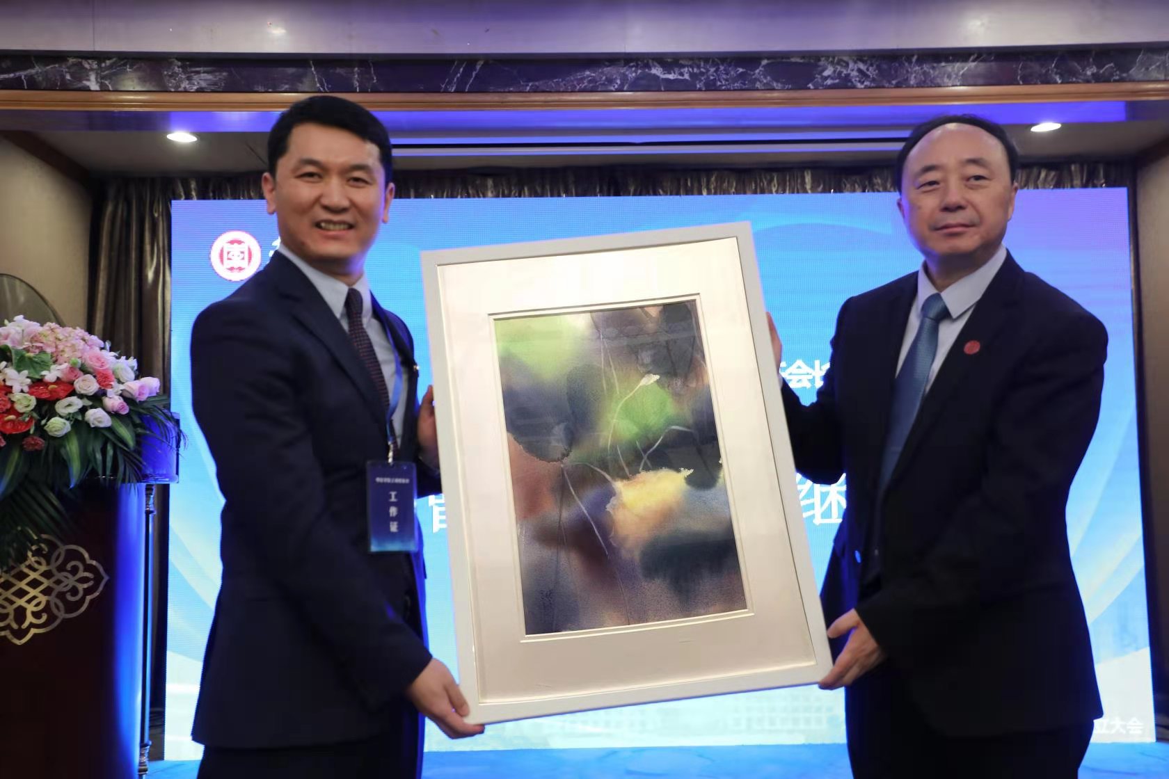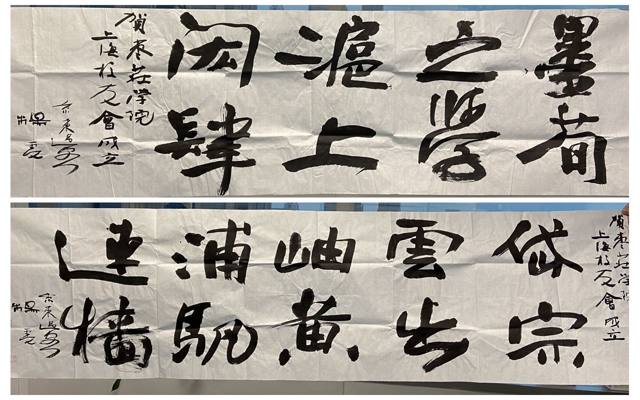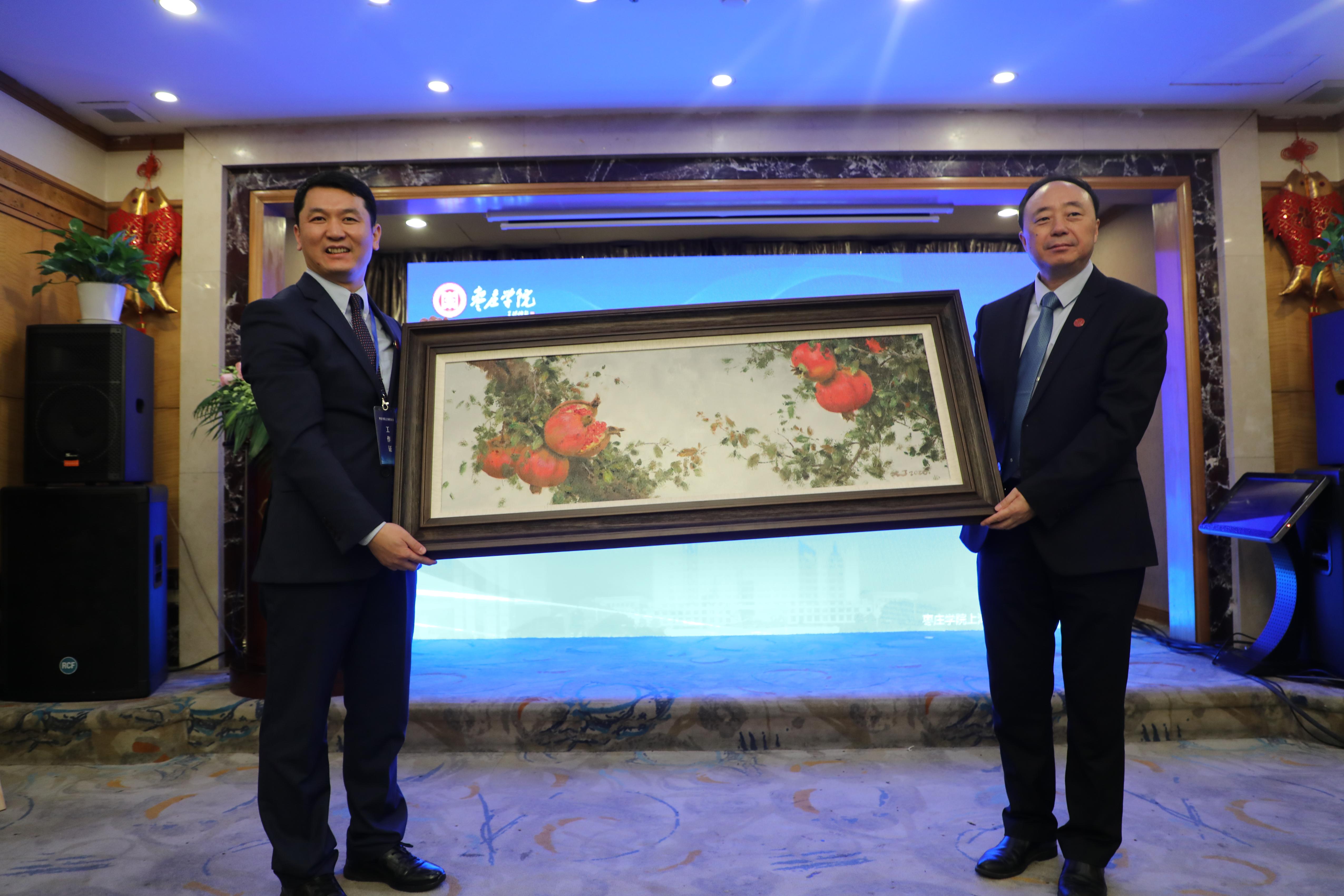 曹胜强向上海校友会赠送了书法作品以及油画《榴实图·大团结篇》。