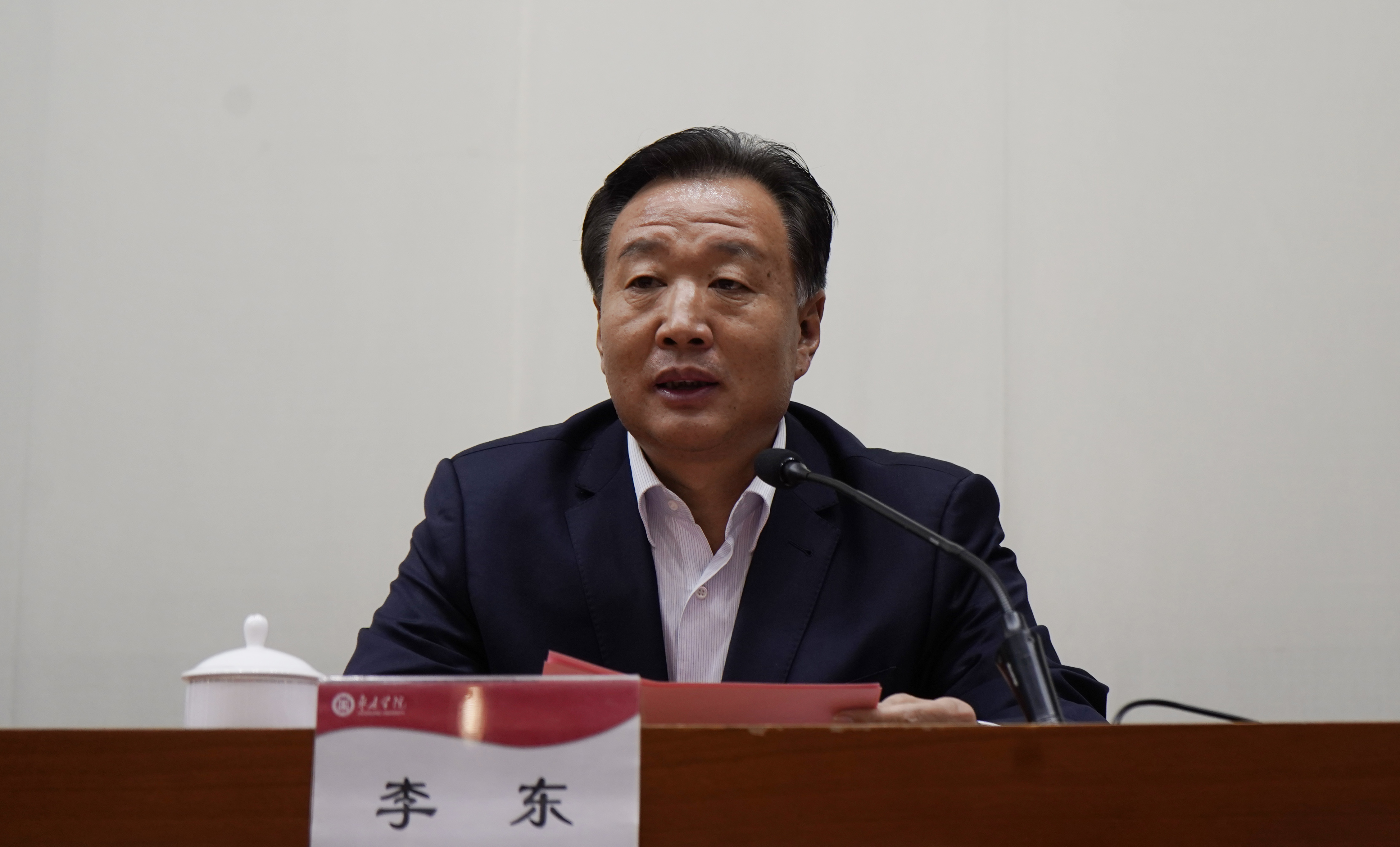 李东在表态讲话时表示,坚决拥护省委的决定,感谢党组织多年来的教育培养,感谢省委和学校党委的关心支持。任职三年多来,坚持党委领导下的校长负责制,认真落实上级要求和学校党委决策部署,依法履职尽责,取得一定成绩。学校各项事业快速发展,各项工作取得明显成效。成绩的取得得益于学校党委的坚强领导,学校有一个团结实干的好班子,有一支执行力强、能吃苦战斗的干部队伍,有广大师生员工的对学校工作的全方位支持。李东表达了对枣庄学院党委班子和广大师生员工的依依不舍,对枣庄学院的美好明天表示衷心祝福。