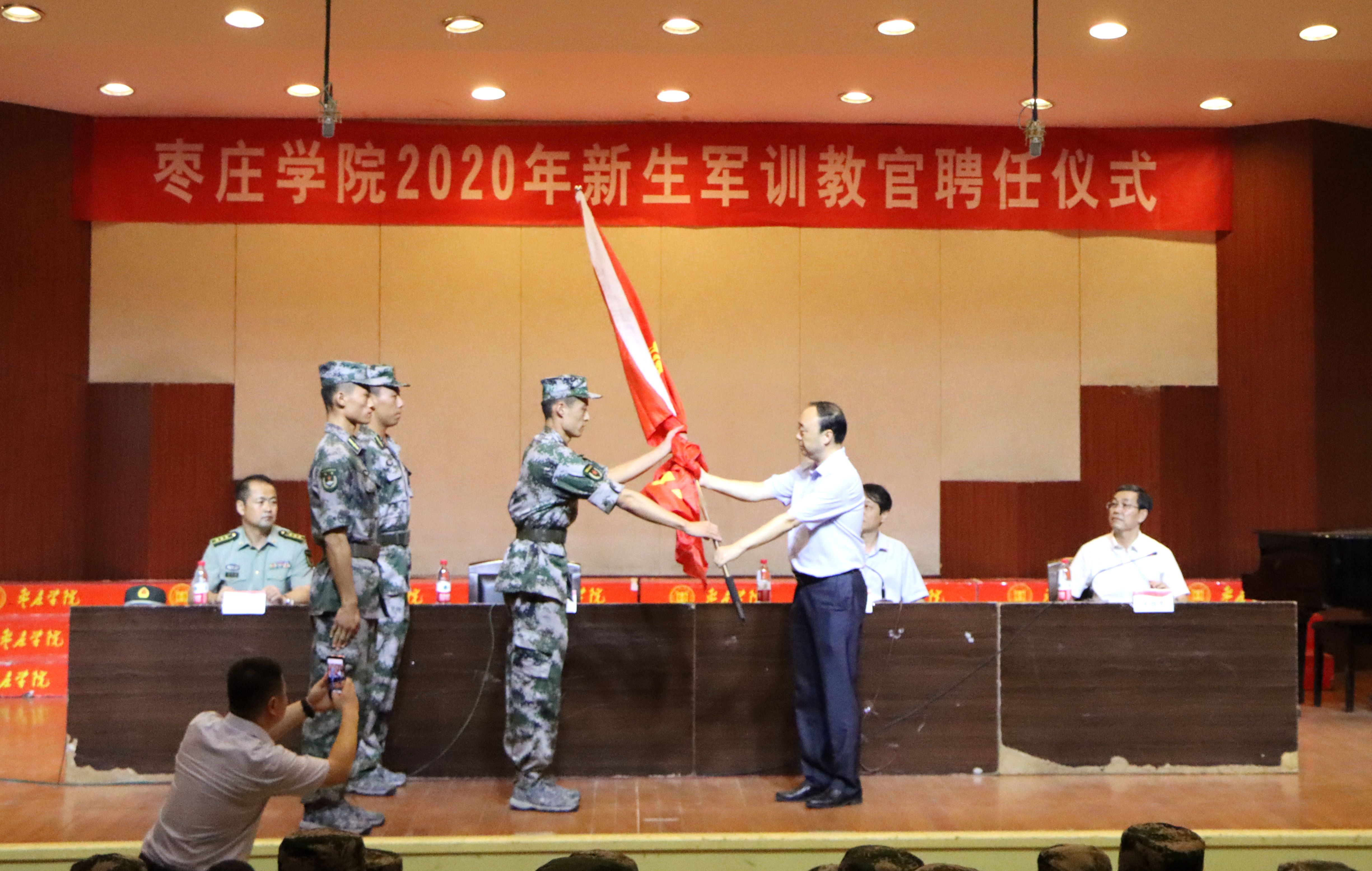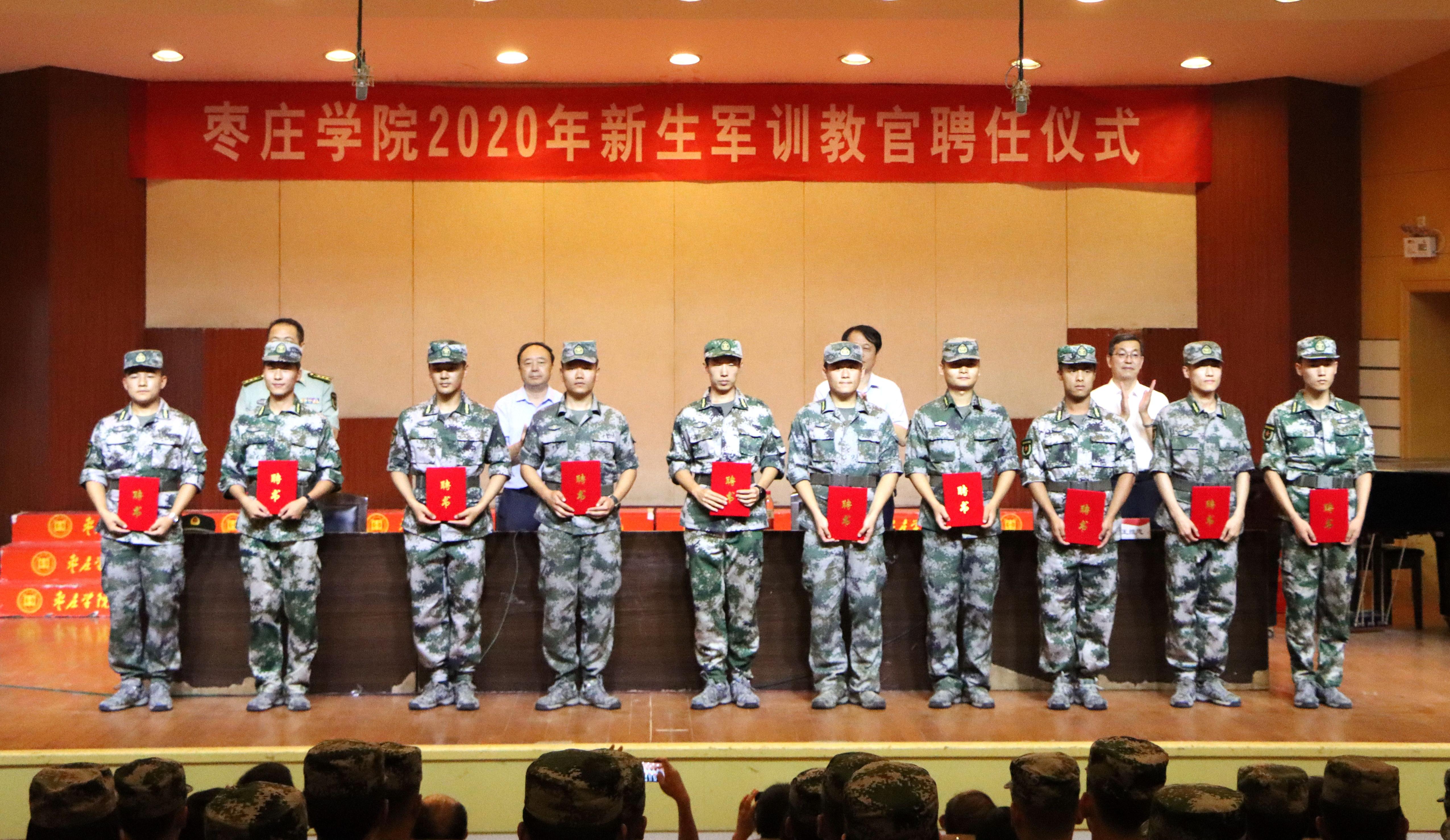 聘任仪式在庄严的国歌声中拉开帷幕,武装部部长王维忠宣读《关于聘任于帅等同志担任枣庄学院2020级新生军训教官的决定》。随后,曹胜强为军训教官团指导员颁发聘书,主席台领导共同为军训教官颁发聘书。